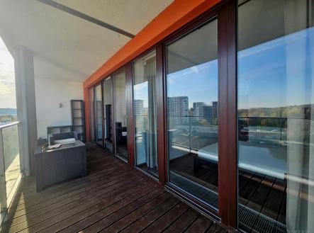 Prostorný a světlý byt k dlouhodobému pronájmu o dispozici 2+kk o výměře 55,5 m s terasou 15 m, komorou a garážovým stáním v novostavbě s recepcí a ostrahou v ulici Jankovcova 8b, Praha 7 Holešovice. Byt se nachází v moderním bytovém komplexu v těsné blízkosti řeky Vltavy. Byt je zařízený. Obývací pokoj s kompletně vybavenou kuchyňskou linkou (trouba, varná deska, myčka, lednice s mrazákem, mikrovlnná trouba), TV a prostorný regál s úložným prostorem. Dále sedačka a jídelní stůl. Samostatná ložnice s manželskou postelí a vestavěnou skříní. Koupelna s vanou. K dispozici komora s pračkou. Prostorná předsíň s botníkem. Velkorysý balkón přístupný z obou místností s úchvatným výhledem na Vltavu. Vysokorychlostní internet. Garážové stání v ceně nájmu. Recepce a ostraha 24/7. Klidná lokalita, výborná dopravní dostupnost metro C Nádraží Holešovice, tramvajové zastávky, bus, hřiště před domem, cyklostezka podél Vltavy Veškerá občanská vybavenost v okolí obchody, kavárny, restaurace, fitness, nákupní centrum Stromovka. Platby: kauce 1 měsíční nájem, provize 33.000Kč, první nájem při podpisu smlouvy (33.000Kč + 7.500Kč poplatky + elektřina cca 1500Kč)