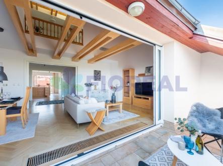 Pronájem mezonetového bytu 5+1 s balkóny a přístupem na střešní terasu, klimatizace, možnost zabezpe