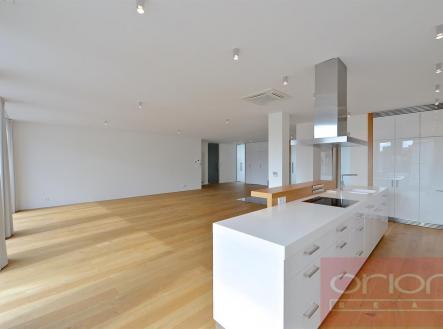 Nabízíme k pronájmu výjimečný mezonetový byt o dispozici 4+kk s celkovou obytnou plochou 260,5 m² a třemi terasami o celkové výměře 193,5 m². Byt se nachází v 5. patře kompletně zrekonstruovaného domu ve vyhledávané lokalitě Praha – Vinohrady. Dominantou bytu je prostorná střešní terasa s úchvatným výhledem na kostel Nejsvětějšího Srdce Páně na náměstí Jiřího z Poděbrad. Spodní podlaží tvoří reprezentativní obývací prostor o velikosti 101 m² s visutým otočným krbem a přímým vstupem na terasu. Součástí je luxusní kuchyňská linka s vestavěnými spotřebiči. Horní patro nabízí tři ložnice, dvě koupelny s vanou, samostatnou toaletu, prostornou šatnu a vstup na střešní terasu. K vybavení bytu patří dřevěné podlahy, vestavěné skříně, pračka a sušička, bezpečnostní vstupní dveře, alarm s možností napojení na PCO a videotelefon. Dům prošel kompletní rekonstrukcí včetně instalace nového výtahu. K dispozici je možnost pronájmu parkovacího stání přímo v domě. Lokalita náměstí Jiřího z Poděbrad je oblíbená díky množství kaváren, restaurací, farmářským trhům i kvalitní občanské vybavenosti. V docházkové vzdálenosti se nachází Riegrovy sady a další parky poskytující prostor pro sport i relaxaci. Samozřejmostí je výborná dopravní dostupnost do centra i dalších částí města a rychlé napojení na městský okruh i dálniční síť.