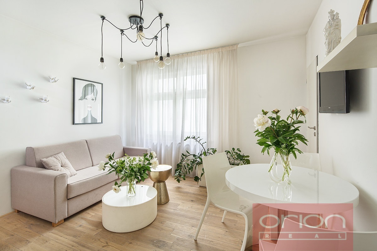 Nabízíme k pronájmu mezonetový byt 2+kk s terasou v 5. patře zrekonstruovaného domu z 19. století v Praze 5. V domě je výtah. Zařízený byt o rozloze 55 m2 nabízí ve spodním patře kuchyň plně vybavenou všemi spotřebiči, koupelnau, šatnu a obývací pokoj, v horním patře je pak ložnice se vstupem na terasu. K vybavení bytu patří klimatizace, TV/SAT/WIFI. Lokalita s výbornou dopravní dostupností autem i MHD, stanice metra Anděl je 5 minut tramvají, tramvajová zastávka U Zvonu je pár metrů od domu. V blízkosti se nachází restaurace, obchody a nádherný park Petřínské sady.