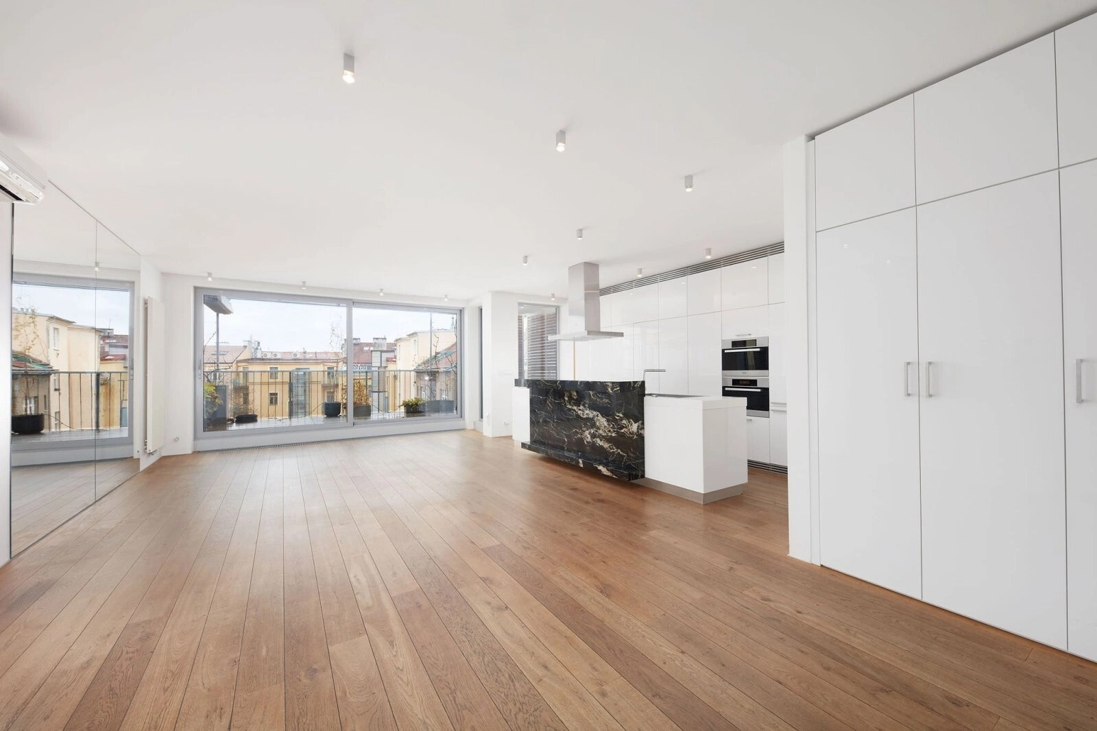 Nabízíme k pronájmu výjimečný mezonetový byt o dispozici 4+kk s celkovou obytnou plochou 260,5 m² a třemi terasami o celkové výměře 193,5 m². Byt se nachází v 5. patře kompletně zrekonstruovaného domu ve vyhledávané lokalitě Praha – Vinohrady. Dominantou bytu je prostorná střešní terasa s úchvatným výhledem na kostel Nejsvětějšího Srdce Páně na náměstí Jiřího z Poděbrad. Spodní podlaží tvoří reprezentativní obývací prostor o velikosti 101 m² s visutým otočným krbem a přímým vstupem na terasu. Součástí je luxusní kuchyňská linka s vestavěnými spotřebiči. Horní patro nabízí tři ložnice, dvě koupelny s vanou, samostatnou toaletu, prostornou šatnu a vstup na střešní terasu. K vybavení bytu patří dřevěné podlahy, vestavěné skříně, pračka a sušička, bezpečnostní vstupní dveře, alarm s možností napojení na PCO a videotelefon. Dům prošel kompletní rekonstrukcí včetně instalace nového výtahu. K dispozici je možnost pronájmu parkovacího stání přímo v domě. Lokalita náměstí Jiřího z Poděbrad je oblíbená díky množství kaváren, restaurací, farmářským trhům i kvalitní občanské vybavenosti. V docházkové vzdálenosti se nachází Riegrovy sady a další parky poskytující prostor pro sport i relaxaci. Samozřejmostí je výborná dopravní dostupnost do centra i dalších částí města a rychlé napojení na městský okruh i dálniční síť.