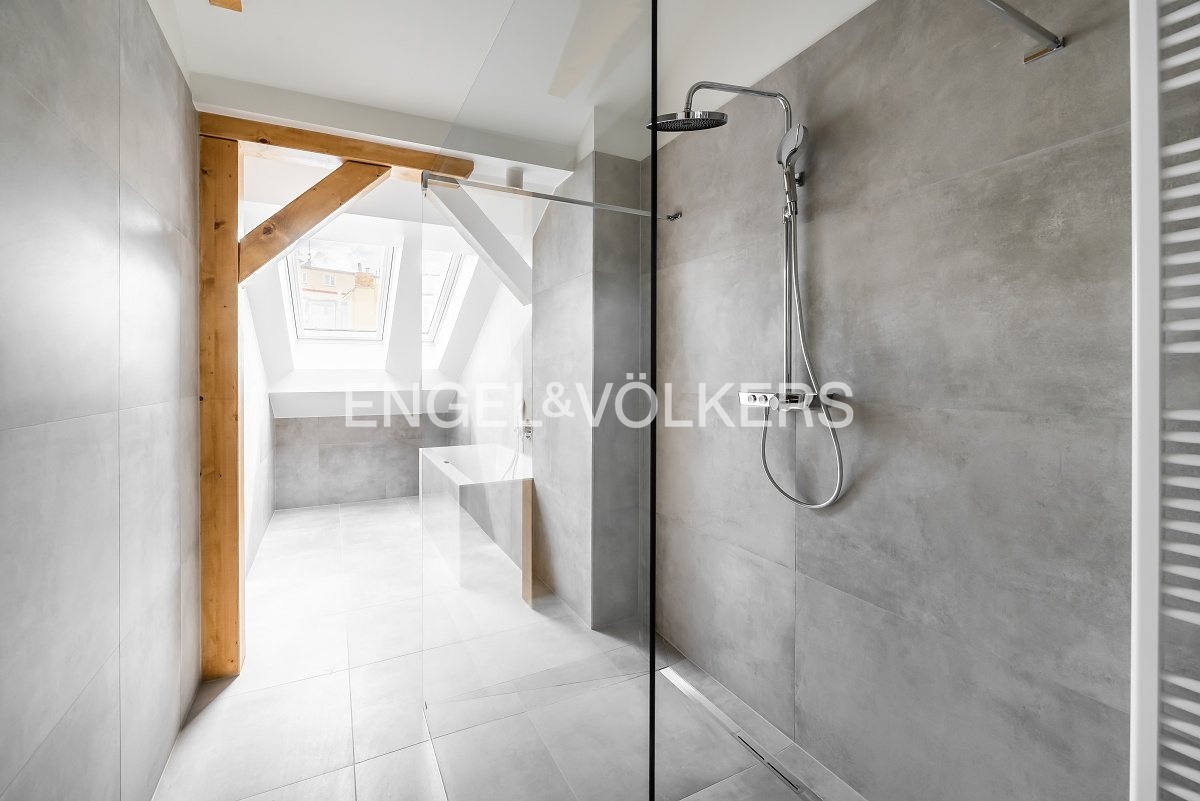 K dlouhodobému pronájmu je připravený nově zrekonstruovaný podkrovní byt o dispozici 3+kk, situovaný v 5. nadzemním podlaží domu s výtahem, v klidném vnitrobloku přímo na Václavském náměstí. Dispozice bytu zahrnuje vstupní předsíň s vestavěnou skříní, ze které je přístup do hlavní obytné místnosti a na samostatnou toaletu. Prostorný obývací pokoj s kuchyňským koutem je vybaven zcela novou kuchyňskou linkou a moderními vestavěnými spotřebiči – elektrickou troubou, varnou deskou, lednicí s mrazákem a myčkou nádobí. K dispozici jsou dvě neprůchozí ložnice, obě zařízené šatními skříněmi, které nabízejí dostatek úložného prostoru. Moderní koupelna je vybavena sprchovým koutem i vanou. Byt se pronajímá nezařízený, s výjimkou vestavěného nábytku a kuchyně. Měsíční poplatky za služby: 2+kk: 5 500 Kč 3+kk: 6 500 Kč Poplatky zahrnují zálohy na vodu, stočné, vytápění (podlahové topení, tepelná čerpadla), úklid společných prostor, elektřinu pro společné prostory a recepční službu 24/7. Standard vybavení: Moderní kuchyňská linka s vestavěnými spotřebiči Koupelna s designovým zařízením a přípojkou na pračku Nová dřevěná špaletová okna se zvýšenou protihlukovou a tepelnou izolací Vinylové podlahy v dekoru dřeva zachovávající charakter historického domu Sklepní kóje a nový výtah Vestavěné skříně Možnost dovybavení pračkou se sušičkou U podkrovních bytů klimatizace V rámci právě dokončené rekonstrukce dvou činžovních domů nabízíme k dlouhodobému pronájmu celkem 30 bytových jednotek o dispozicích 2+kk a 3+kk, včetně atraktivních podkrovních bytů. Dům se nachází v bezprostřední blízkosti stanic metra A, B a C, Hlavního nádraží a budoucí tramvajové zastávky. Lokalita nabízí veškerou občanskou vybavenost a výbornou dostupnost jak MHD, tak pěšky. Byty nejsou určeny ke krátkodobému pronájmu (např. Airbnb) V případě zájmu o více informací či prohlídku konkrétní bytové jednotky nás prosím kontaktujte. Rádi Vám pomůžeme s výběrem vhodného bytu dle Vašich požadavků. Parkovací stání je možné ve vnitrobloku za příplatek 5 500 Kč + DPH. Kauce jsou dva měsíční nájmy včetně poplatků. Provize je jeden měsíční nájem + DPH.