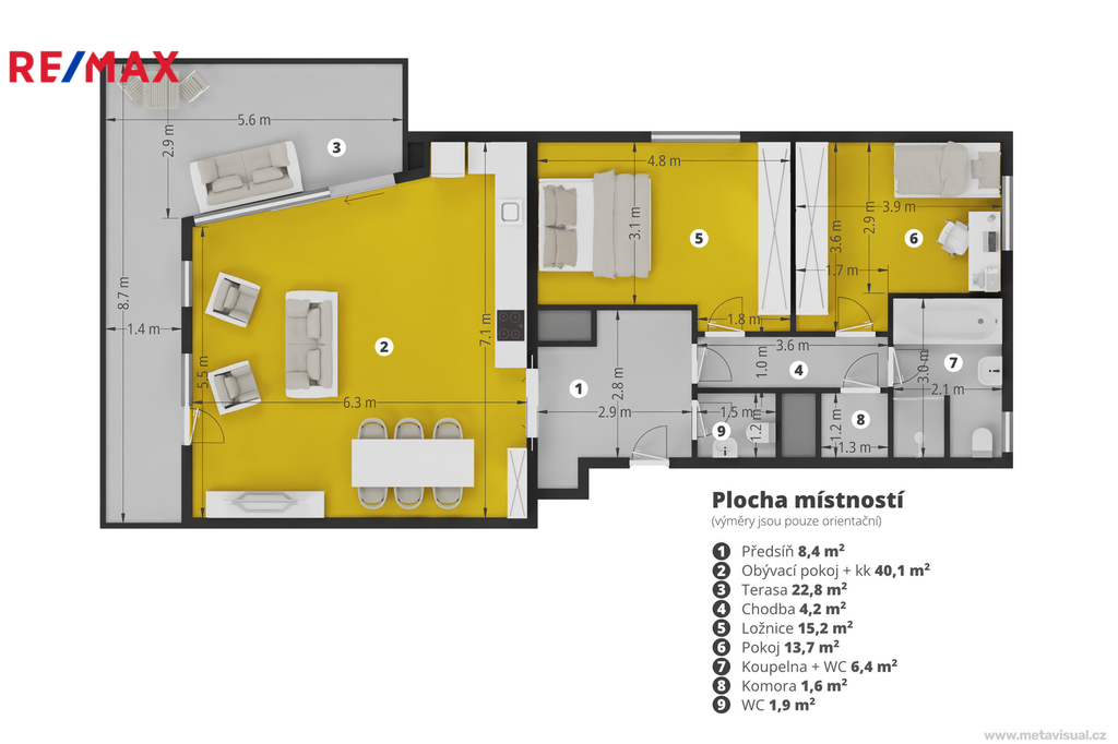 Nabízíme k pronájmu nadstandardní byt 3+kk v prestižní rezidenci River Watch Dock – Praha 8, Libeň, s výjimečným výhledem na marinu, a okolní zeleň. Byt ve 3. patře o podlahové ploše cca 96 m² disponuje prostornou terasou o velikosti 23 m², která přirozeně rozšiřuje obytný prostor a nabízí ideální místo pro relaxaci v klidném prostředí u vody. Interiér bytu tvoří světlý obývací pokoj s plně vybavenou kuchyní a jídelní částí, ze kterého je přímý vstup na terasu. Dále jsou zde dvě samostatné ložnice, chodba, koupelna s vanou, sprchovým koutem a WC, samostatné WC, komora a vstupní hala. Rezidenční komplex nabízí 24/7 recepci a ostrahu, podzemní parkování a vysoký standard bydlení. Recepce je k dispozici například pro přebírání balíčků. V okolí rezidence se nachází upravené nábřeží s promenádou, cyklostezka podél řeky, parky vhodné pro procházky i běh, golfové odpaliště, sportovní centra a tenisové kurty. V pěší dostupnosti jsou rovněž restaurace, kavárny, obchody, školy a lékařská péče. Kulturní vyžití doplňuje Divadlo pod Palmovkou a galerie DOX. Finanční podmínky Nájemné: 55 000 Kč / měsíc Zálohy na služby: 10 000 Kč / měsíc Energie: přepis na nájemníka Garážové stání a sklep je možné pronajmout za příplatek 2 000 Kč / měsíc. Provize RK: 1 měsíční nájem + DPH