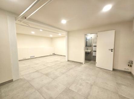 Pronájem nebytového prostoru o velikosti cca 46 m2, Praha 6 - Břevnov, ulice U Dělnického cvičiště. Prostor se nachází v přízemí kompletně zrekonstruovaného a zatepleného panelového domu s novým výtahem. Vstup do nabízeného prostoru je možný z ulice přes hlavní vstup domu a poté cca 10 schody do přízemí (v případě potřeby je v domě i výtah) a nebo bezbariérově ze zadního prostranství domu (viz foto). Orientace oken je na východ. Dům je velmi klidný a obývaný slušnou klientelou. Prostor je vhodný nejlépe pro kancelářské účely nebo podnikání s klidným provozem a minimální docházkou klientů. Prostor je po kompletní, právě dokončené moderní a vkusné rekonstrukci. Prostor sestává ze 2 otevřených místností, každá má okno zabezpečené mřížemi. U vchodových dveří je vybudována příprava na případnou kuchyňskou linku. V koupelně je sprchový kout, umývadlo se zrcadlem a vstup na samostatné WC. Na podlaze je velkoformátová dlažba. Prostor je vytápěný automaticky a zdarma díky rozvodům dálkového topení, které je umístěné v soklu s průduchy v zadní části prostoru. Díky tomu je v prostoru příjemné teplo a sucho bez měsíčních nákladů za vytápění. Parkování je možné na ulici (modré zóny) a nebo je možné si pronajmout až 2 garážová stání v suterénu sousedního domu. Dům se nachází v klidné jednosměrné ulici. Občanská vybavenost je v místě - cca 1 min chůze od domu je supermarket Billa, cukrárna a restaurace „Na Markétě“. Výborná dopravní dostupnost do centra i na letiště Václava Havla. U domu je zastávka busu č. 164, cca 3 min chůze je zastávka autobusu č. 180 "Břevnovská" s přímým spojením na Metro A - Dejvická nebo Metro B - Zličín. Cca 10 min chůze je tram č.22 a 25 (zastávka U Kaštanu) s přímým spojením do samotného centra Prahy a na Metro A, B, C. Prostor je volný ihned. Vratná kauce je ve výši 32.200 Kč.