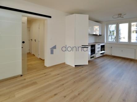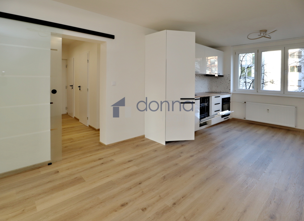 Nabízíme pronájem velice pěkného bytu 3+kk, o ploše 54m2, po rekonstrukci, se zasklenou lodžií, ve 2. patře menšího panelového domu s výtahem v mezipatře, ulice Brunclíkova, Praha 6 - Břevnov. Byt je nezařízený. K dispozici je kuchyňská linka včetně spotřebičů: lednice, mrazák, myčka, el. trouba, indukční varná deska, digestoř. Z velké vstupní chodby se vstupuje posuvnými skleněnými dveřmi do obývacího pokoje s kuchyní, do malé ložničky a do příslušenství: koupelny s vanou a umyvadlem, kde je i příprava na pračku a na samostatnou toaletu. Z obývacího pokoje se vchází do dalšího pokoje se vstupem na zasklenou lodžii s výhledem na vzrostlou zeleň. Podlahy vinyl a dlažba, topení centrální dálkové. Součástí nájmu je i sklep v suterénu budovy o ploše cca 3m2. Byt prošel nákladnou rekonstrukcí. V těsné blízkosti se nachází Obora Hvězda, park Ladronka, dopravní hřiště, dětské hřiště, škola, školka či obchod. Volný od 2. pol. ledna 2026. Prohlídky možné dle dohody již nyní. Pronajímatel si vyhrazuje právo výběru nájemce.