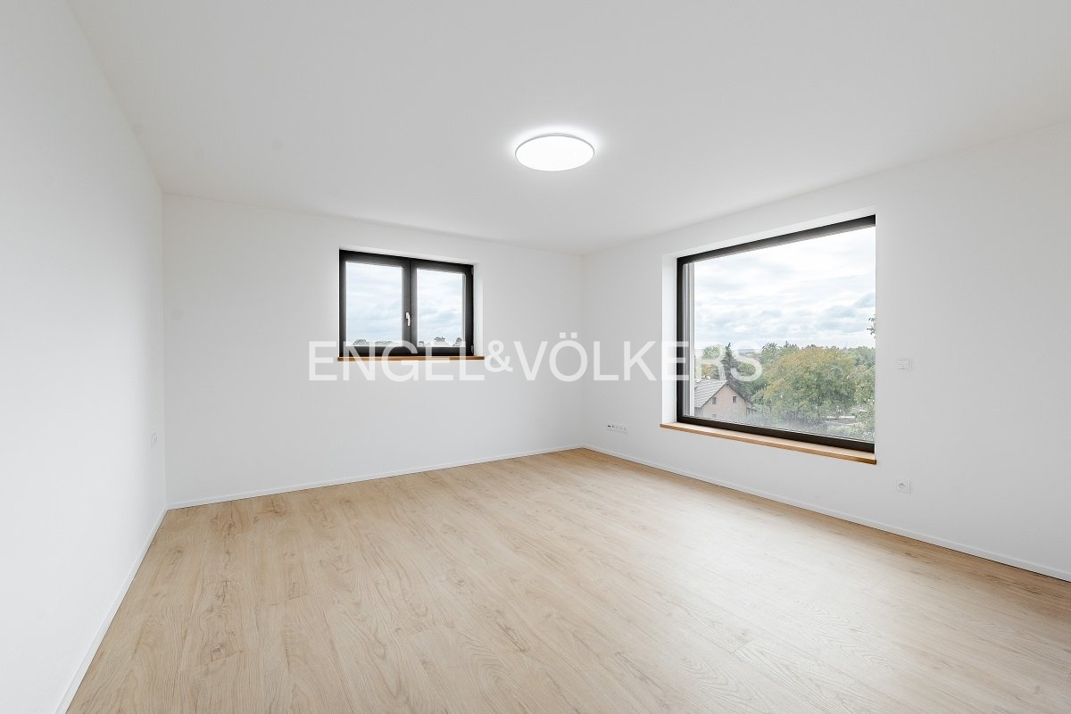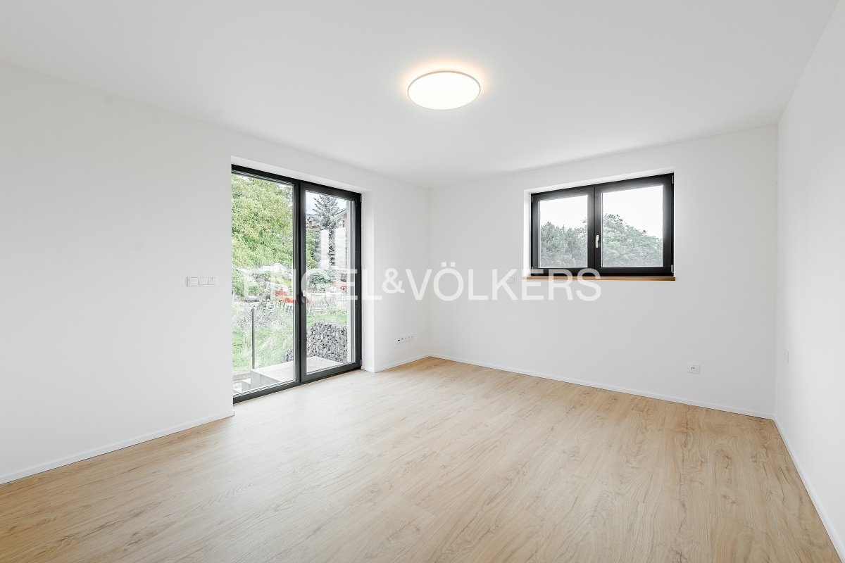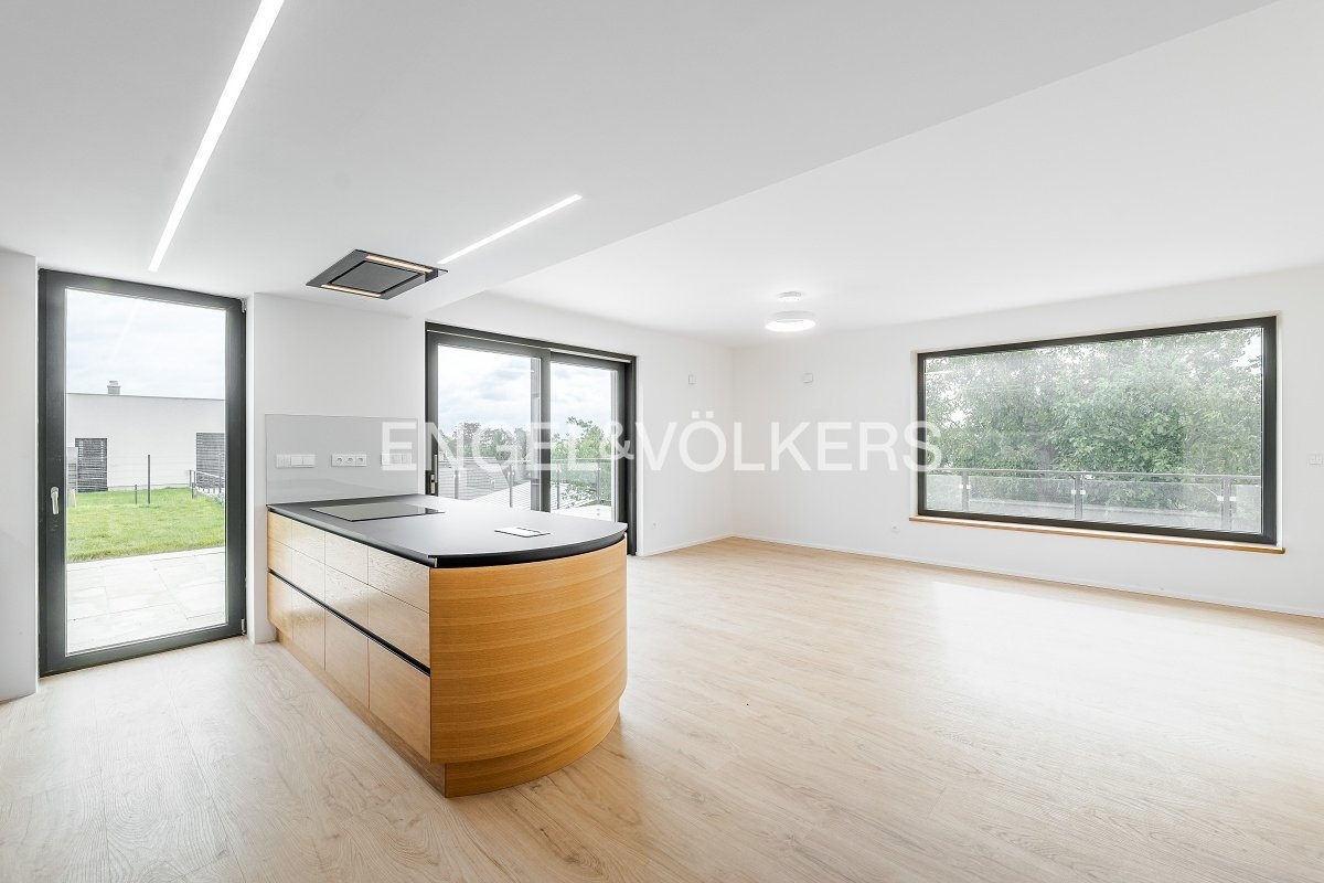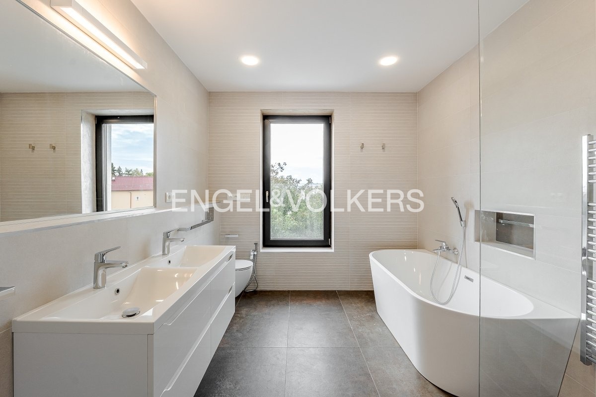 Nabízíme k dlouhodobému pronájmu moderní nově postavený řadový rodinný dům s dispozicí 5+kk s garáží a krásnou zahradou, který se nachází v tiché a vyhledávané rezidenční části Prahy 5 – Slivenec. Dům je ideální pro rodinu, která hledá komfortní a klidné bydlení v blízkosti přírody, přesto s výbornou dostupností do centra města, nabízí velkorysý prostor rozložený do tří podlaží a je ve vynikajícím technickém stavu. Přízemí: Vstupní hala Technická místnost Společenská místnost a toaleta Garáž s úložnými regály 1. patro: Prostorný obývací pokoj s přímým vstupem na terasu a výhledem do zeleně Moderní kuchyňská linka s dostatkem úložného prostoru a vestavěnými spotřebiči (indukční deska, trouba,lednice, mikrovlnná trouba, myčka a do stropu zabudovaná digestoř)Pracovna / pokoj pro hosty s přístupem na zahradu Koupelna se sprchovým koutem (včetně tropické sprchy) Samostatná toaleta Technická místnost pro pračku, sušičku a bojler 2. patro: Hlavní koupelna s vanou i sprchovým koutem Dvě prostorné ložnice s nádherným výhledem do okolní přírody Dům je vybaven nadstandardními materiály a prvky jako jsou například: dřevěné podlahy, elegantní schodiště z přírodního tureckého kamene, elektrické venkovní rolety, velkoformátová hliníková panoramatická okna, vestavěné skříně v chodbách a kvalitní sanita. Dům se pronajímá nezařízený; zůstává vestavěný nábytek a plně vybavená kuchyň. Součástí pronájmu je garážové stání a další 3 parkovací místa před domem, udržovaná zahrada ideální pro relaxaci a rodinné aktivity. Praha 5 – Slivenec je velmi klidná a bezpečná rezidenční oblast obklopená přírodou. V okolí je kompletní občanská vybavenost – mateřské a základní školy, obchody, restaurace i sportoviště. Skvělá dopravní dostupnost – pár minut autem na Pražský okruh i do centra města.