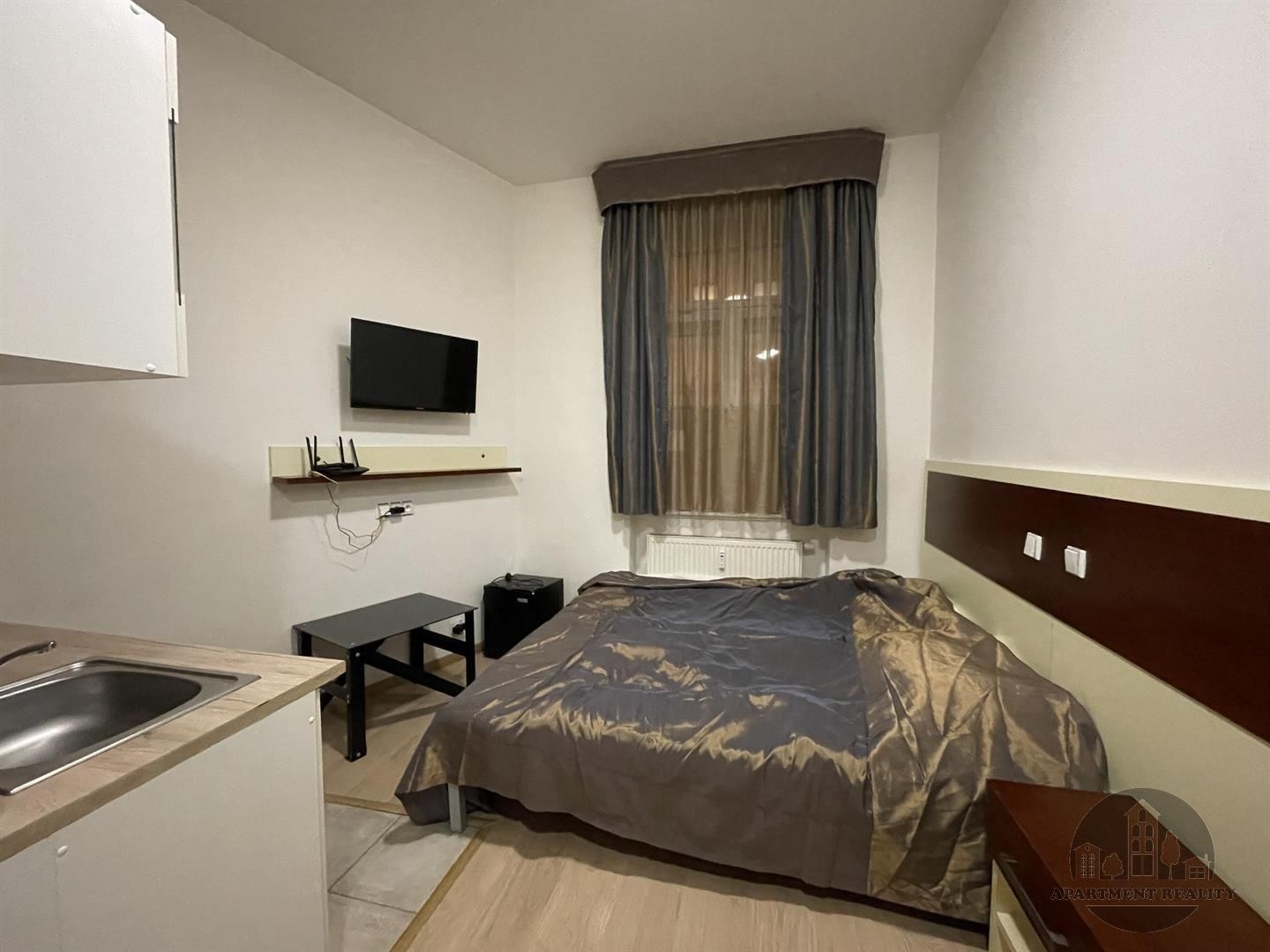 Nabízíme pěkný byt 1+kk v Prokopově ulici. Byt se skládá z pokoje a koupelny. Pračka a sušička je možné využívat v domě za poplatek 60 kč/hod Dvouplotynka muže byt dodána, mini lednička. Byt může být zařízen nábytkem nebo nemusí. Volné ihned. Domácí zvíře dovoleno.