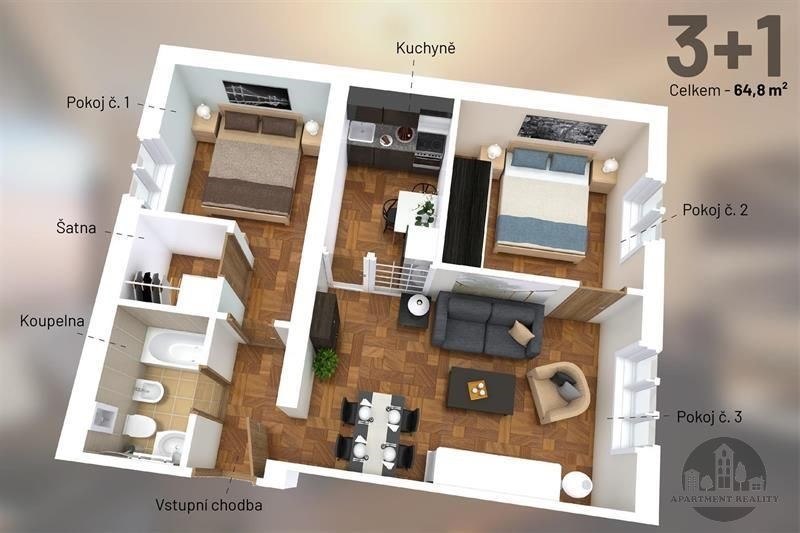 Nabízíme byt 3+1, který se skládá se ze vstupní chodby, obývacího pokoje, kuchyně, 2 ložnic, šatny a koupelny se vanou, WC a bidetem. V pěší dostupnosti cca 500 m je tramvajová zastávka nebo 1 zastávku tramvají vzdálené metro C stanice Hlavní nádraží. Lokalita Prahy 3 patří mezi jednu z nejvyhledávanějších díky svému vynikajícímu dopravnímu spojení a neustálému rozvoji. Najdete z vše co k modernímu stylu života ve velkoměstě potřebujete. Volné ihned. Domácí zvíře dovoleno. č. 32
