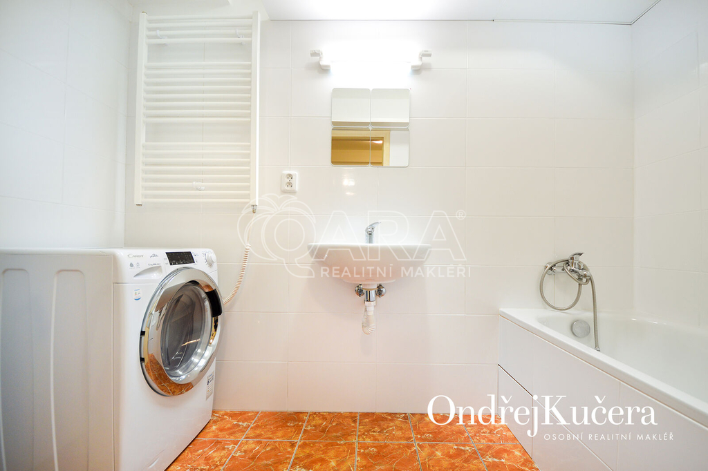 Pronájem plně vybaveného bytu na adrese K Podjezdu 1445/5, Praha 4, Nusle. Slušný a seriózní pronajímatel se zájmem dlouhodobého pronájmu minimálně na rok a více. Tento prakticky řešený byt 1+kk s celkovou výměrou 29 m2 je vhodný pro jednotlivce, případně pár. Nachází se ve sníženém přízemí cihlového domu. V roce 2023 prošel rekonstrukcí a je plně vybavený. Má pokoj s kuchyňskou linkou, vstupní předsíň, koupelnu s vanou a samostatnou toaletu. Je vybavený vestavěnou skříní, pracovním stolem, postelí 130 cm širokou, jídelním stolem se židlemi, sklokeramickou varnou deskou, elektrickou troubou, lednicí s mrazákem, pračkou a bojlerem na ohřev vody v koupelně. Vedle bytu je také možnost využití společného uzamykatelného prostoru na kola. Jedná se o stále populárnější lokalitu, která se dynamicky rozvíjí. Je zde vše potřebné pro každodenní život od zdravotních a sportovních středisek, obchodů, veškerých služeb, až po nové trendy podniky. Za zmínku stojí i skvělá dopravní dostupnost do centra. Autobusová zastávka Kloboučnická je hned u domu a tramvajová zastávka Pod Jezerkou za rohem. Nedaleko je také vlakové nádraží Vršovice. V okolí se nachází hned několik oblíbených parků, jako Grébovka, Folimanka a Jezerka. Provizi neplatíte. Měsíční nájem činí 15.000 Kč plus poplatky ve výši 1.500 Kč a elektřina, která bude přepsána na nájemníka. By je připravený k nastěhování. Pro bližší informace mě neváhejte kontaktovat. Ondřej Kučera osobní realitní makléř