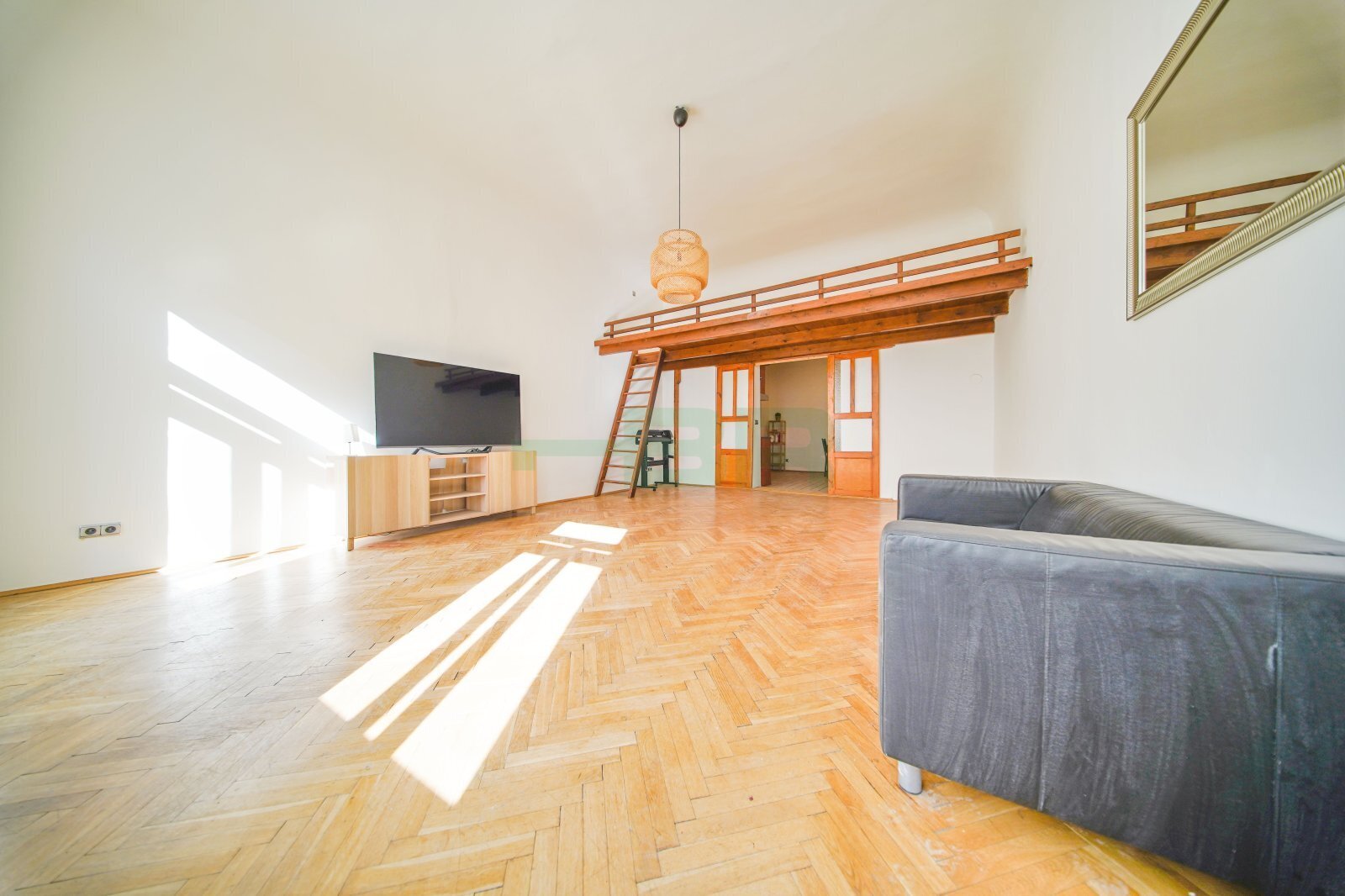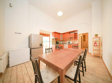 Pronájem prostorného bytu 1+1, 70 m2, v 1. patře cihlového domu, ve skvělé lokalitě, Praha 1, Staré Město, ulice Dlouhá. V bytě nová dřevěná, dvojitá okna, na podlahách v pokoji dřevěné parkety, v kuchyni a předsíni dlažby. Kuchyňská linka včetně spotřebičů, samostaná lednice s mrazákem + samostatný mrazák. Koupelna se sprch. koutem, umyvadlem se skříňkou, toaletou a topným žebříkem. V předsíni vestavěná skříň. V pokoji patro na spaní (5x2 m). V bytě vysoké stropy 3.8 m v obývacím pokoji, 4,25 m v kuchyni. Vytápění el. kotlem, ohřev vody el. bojlerem. Měsíční nájem 21.000,-Kč + 3.000,-Kč služby + elektřina. Kauce 24.000,-Kč. Provize ve výši jednoho nájmu + 21%DPH. Byt je okamžitě k dispozici.