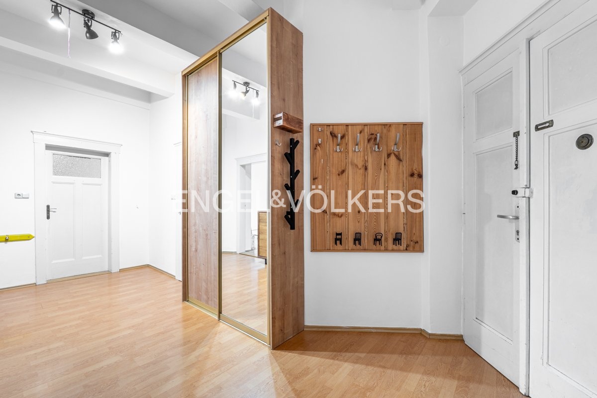Nabízíme vám k pronájmu prostorný byt 3+kk v klidné rezidenční lokalitě Prahy 8 s výbornou dopravní dostupností. Byt se nachází v 1. nadzemním podlaží činžovního domu a nabízí 92 m² podlahové plochy. Praktické uspořádání zahrnuje prostornou vstupní halu, ze které je přístup do všech místností, dále dvě samostatné ložnice, obývací pokoj propojený s plně vybavenou kuchyní se všemi spotřebiči, koupelnu s vanou, samostatnou toaletu a technickou místnost. V bytě je kombinace vinylové podlahy a parket. Díky velikosti podlahové plochy a výšce stropů cca 2,9 m působí byt velmi vzdušně a světle. Lokalita Prahy 8 je oblíbená díky své kompletní občanské vybavenosti, výborné dostupnosti do centra Prahy a širokým možnostem volnočasových aktivit. V docházkové vzdálenosti se nachází například lesopark Okrouhlík, park Dlážděnka, řada kaváren a restaurací či koupaliště Stírka.