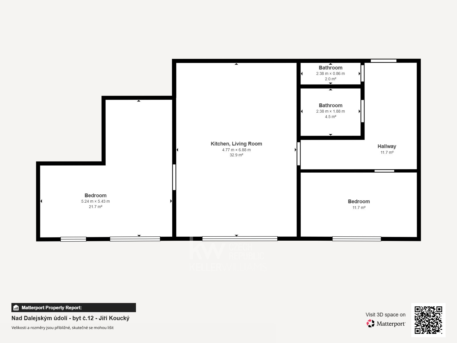 Pronájem prostorného bytu 3+kk, 87 m² | Nad Dalejským údolím 2699/9 | Praha 5 – Stodůlky Nabízíme k dlouhodobému pronájmu velkorysý a světlý byt o dispozici 3+kk a celkové podlahové ploše 87 m², umístěný v 1. patře (2. nadzemním podlaží) moderního bytového domu v klidné lokalitě na hraně Prokopského údolí. Součástí nájmu je garážové stání a sklep v suterénu domu. Byt je ideální pro rodinu s jedním nebo dvěma dětmi, případně pro náročnější pár, který ocení prostor, soukromí, a klid. Dispozice - Byt je velmi prakticky a komfortně řešený: - prostorná vstupní předsíň - obývací pokoj s kuchyňským koutem - dvě samostatné ložnice (ložnice + dětský pokoj / pracovna) - koupelna s vanou - samostatné WC - garážové stání a sklep v suterénu domu - Dispozice nabízí dostatek prostoru, soukromí i komfortu pro rodinné bydlení. Vybavení a technické informace - byt bude nevybavený - kuchyňská linka včetně spotřebičů (trouba, varná deska, myčka) - pěkné a udržované povrchy - dobrý technický stav bytu i domu - vytápění a ohřev vody: centrální - orientace na východ - moderní, udržovaný dům s podzemními garážemi Nájemní podmínky a provozní náklady - nájemné: 27.900,- Kč / měsíc - poplatky za domovní služby: 5.000,- Kč / měsíc / pro 3 osoby (hrazeny nad rámec nájemného) - elektřina bude převedena na nájemníka - kauce: 39.000 Kč (výše kauce může být navýšena v případě domácích mazlíčků) - provize: 27.900 Kč bez DPH (celkem 33.759 Kč vč. DPH) K nastěhování - od 15. 2. - majitel vlastní více nemovitostí → dlouhodobý a stabilní pronájem - preferován dlouhodobý nájemní vztah Jednou z hlavních předností této nabídky je lokalita: - přímé napojení na Prokopské údolí – ideální pro rodiny, sport i relax - výhled do zahrady a maximální klid - cca 8 minut na autobusovou zastávku – Velká Ohrada - cca 15 minut pěšky na metro B – Luka - v okolí kompletní občanská vybavenost - školy, školky, obchody, restaurace, služby, zdravotnická zařízení klidné rezidenční prostředí - Byt je skvělou volbou pro rodinu, která hledá prostor, soukromí, napojení na přírodu, aniž by se musela vzdát komfortu městského bydlení. Jiří Koucký realitní makléř Všechny uvedené informace mají pouze orientační charakter a mohou se změnit. Tento inzerát není návrhem na uzavření nájemní smlouvy dle § 1732 občanského zákoníku. Uváděné výměry jsou přibližné. Pronajímatel si vyhrazuje právo upravit podmínky nebo upřednostnit vybraného zájemce.