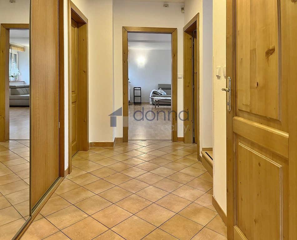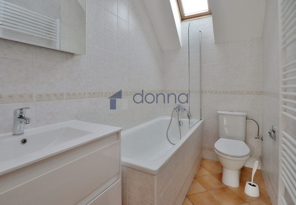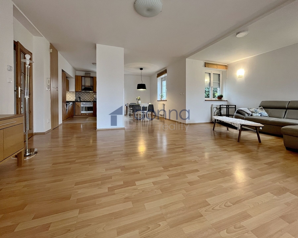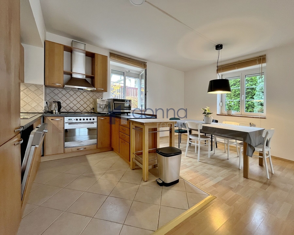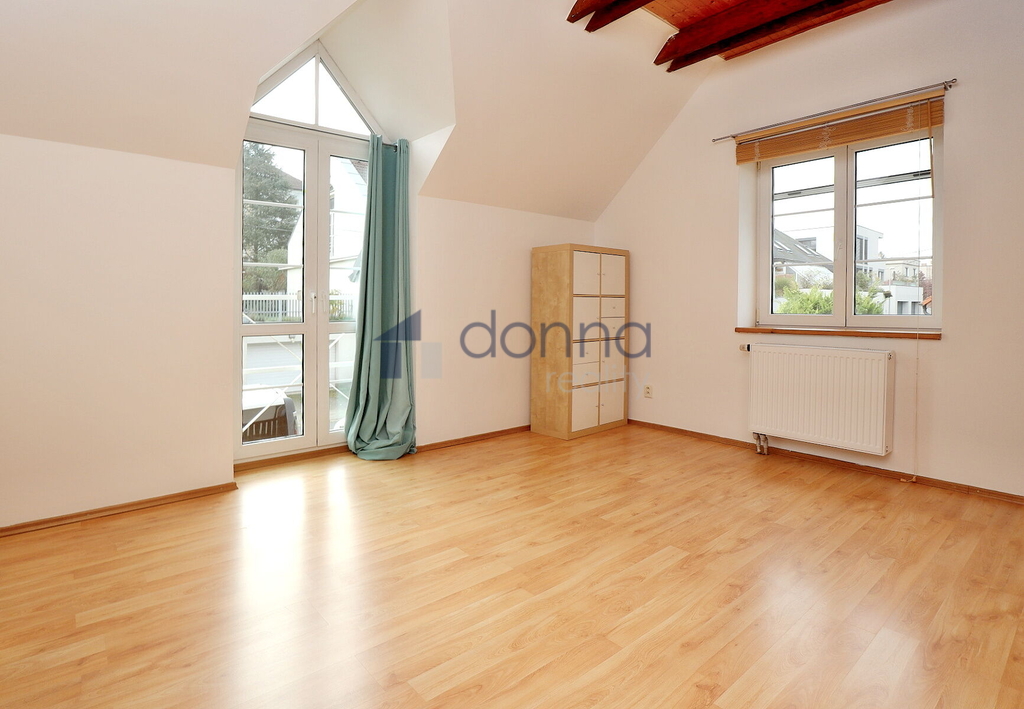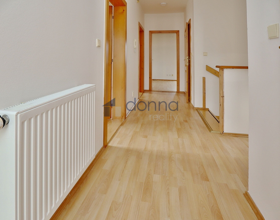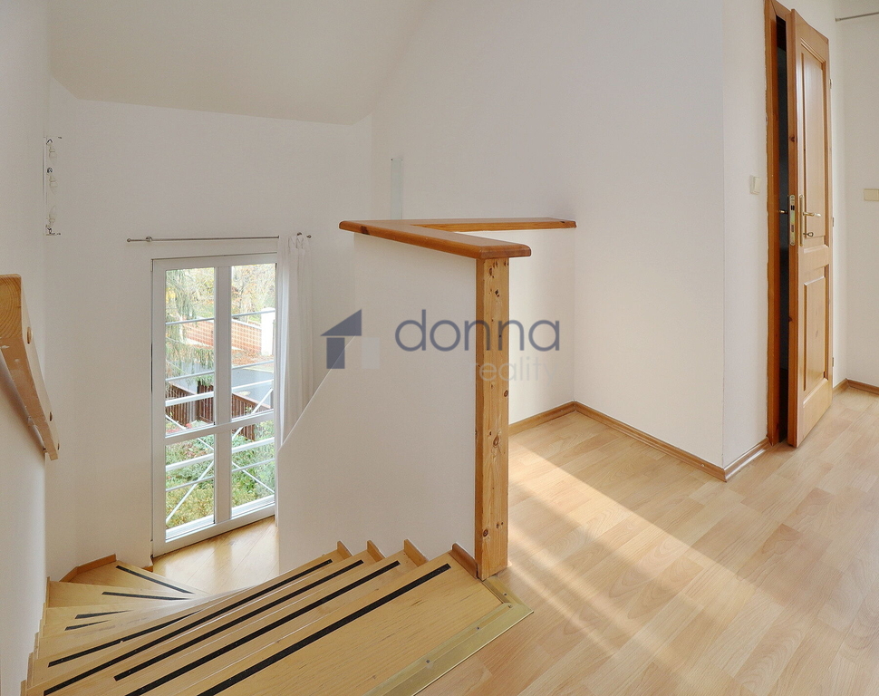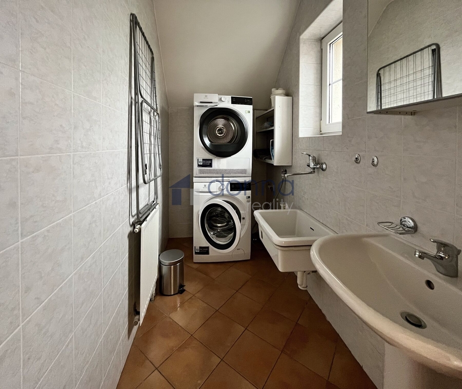 Nabízíme k pronájmu samostatný rodinný dům 5+kk, plocha cca 186m2, pozemek celkem 550m2, v ulici K Beránku, Praha 4 - Modřany. V přízemí domu se nachází velmi prostorný obývací pokoj s kuchyňským koutem (45m2) a zimní zahradou (14m2), ze které je vstup na terasu a zahradu, dále se v přízemí nachází koupelna se sprchovým koutem a toaletou a ložnice 12m2. Kuchyňský kout je vybavený lednicí s mrazákem, myčkou, varnou deskou, troubou, mikrovlnnou troubou a kávovarem, částečně zařízeno nábytkem, v hale vestavěné skříně, vstup do sklepa (10m2), kde je umístěn plynový kotel. V patře domu 3 samostatné ložnice, v jedné z nich schodiště do půdního prostoru. koupelna s vanou a toaletou, úklidová místnost vybavená pračkou a sušičkou. Plovoucí podlahy a dlažba, plastová okna se sítěmi proti hmyzu, v přízemí instalovány předokení rolety, alarm. Okrasná zahrada poskytující dostatek soukromí, garáž až pro 2 vozy, pod níž se nachází další skladové prostory. Klidná ulice ve vilové čtvrti na jižním svahu Modřan s otevřeným výhledem do údolí k řece. Nedaleko parku Modřanská rokle a mezinárodní školy Prague British International School. Na metro Kačerov cca 15 minut autobusem.