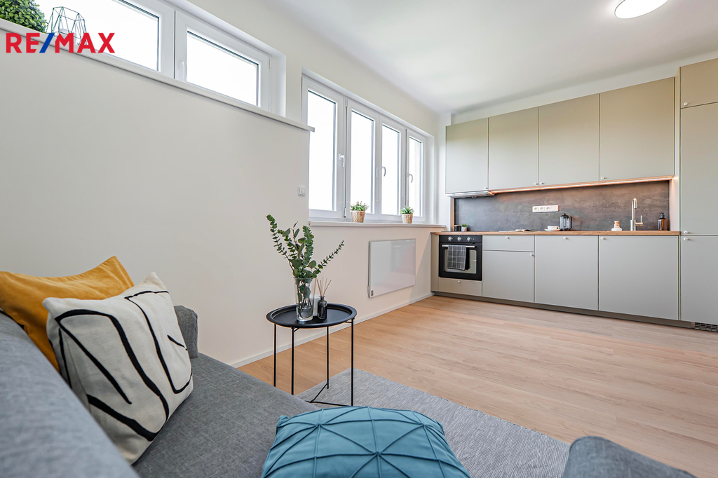 Nabízíme k pronájmu moderně zrekonstruovaný byt 2+kk v posledním patře bytového domu s krásnými výhledy do okolí. Jednotka se nachází ve vyhledávané lokalitě Prahy 4, jen pár kroků od stanice metra linky C - Budějovická. Dům se nachází v klidné ulici s kompletní občanskou vybaveností v docházkové vzdálenosti. Bytová jednotka disponuje vstupní chodbou, obývacím pokojem s kuchyňskou linkou, ložnicí, koupelnou a oddělenou toaletou. Interiér bytu je řešen chytře, s rozmyslem a nabízí variabilní uspořádání nábytku. Obývací pokoj je orientovaný na západ a ložnice na východ, byt je tak příjemně prosvětlený a dobře větratelný. Díky svému umístění v nejvyšším patře nabízí jednotka pěkné výhledy do okolí. Nejedná se ale o byt přímo pod střechou, proto není třeba se obávat zvýšených teplot v letních měsících. Nová kuchyňská linka je vybavena moderními spotřebiči, včetně ledničky, vestavěné myčky, indukční varné desky a trouby. Koupelna je oddělená od toalety a vybavena podlahovým topením. Vyniká moderním designem s velkoformátovými obklady 60 × 60 cm, které prostoru dodávají elegantní a nadčasový vzhled. V bytě jsou nové rozvody vody, odpadu i elektroinstalace. Kvalitní sanita značky Grohe, plastová okna a bezpečnostní vstupní dveře zajišťují komfort a bezpečí. Dům je sice v původním stavu, ale jeho rekonstrukce je aktivně projednávána v rámci SVJ. Za domem je pak společná zahrada pouze pro obyvatele domu, kterou mohou nájemci využít k příjemnému posezení. Měsíční zálohy na služby činí cca 2.000,- Kč + elektrická energie (bude převedena na nájemce). Byt je připraven k okamžitému nastěhování a je pronajímán bez zařízení. Kauce ve výši dvou měsíčních nájmů. V okolí domu najdete vše, co potřebujete – obchodní centra, lékárnu, zdravotní středisko, školy, školky, restaurace i kavárny. Lokalita je výborně dopravně dostupná, s rychlým spojením do centra města i Krčského lesa s bezpočtem pěších i cyklistických tras.