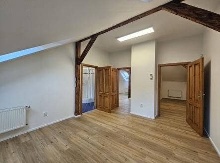 Pronájem reprezentativního kancelářského prostoru o dispozici 5kk, 104 m2, Praha 8 - Libeň, ulice Vinopalnická, 1.patro ve velmi pěkném, kompletně udržovaném cihlovém domě. Dům se nachází v klidné, slepé ulici a je obklopen zelení, o kterou pravidelně pečují zahradníci. Dům i okolí působí velmi klidným a inspirativním dojmem. Orientace prostoru je na východ (2 místnosti, každá má pak i okno na jih nebo sever) a na západ (1 místnost a koupelna). Prostor je po nákladné, právě dokončené rekonstrukci, při které byly vyměněny všechna střešní okna, v celém prostoru položen kvalitní vinyl, nainstalována nová kuchyňská linka a proběhla kompletní výmalba. Prostor sestává ze vstupního schodiště (8,21 m2), 4 průchozích místností (22,51 m2, 16,77 m2, 9,07 m2, 13,23 m2), koupelny s WC (7,92 m2) a 1 neprůchozí místnosti, ve které je i klimatizační jednotka (26,28 m2). Prostor je nezařízený nábytkem. K dispozici je nová kuchyňská linka s novými spotřebiči – indukční vařič, lednice a mikrovlnná trouba. V prostorné koupelně je umývadlo, WC, vana i sprchový kout. Topení je ústřední - společný kotel pro celý dům, který se ovládá samostatným termostatem nainstalovaným v prostoru. Prostor je možné mít zabezpečený alarmem od společnosti Jablotron, který je napojený na CPO a to za 400 Kč měsíčně. Parkování je možné pro 2 auta na přilehlém pozemku před domem za 1.450 Kč měsíčně / 1 auto. Výborná dopravní dostupnost do centra - 50 m od domu je zastávka Vinopalnická (bus č. 166) s přímým spojením (2 zastávky) na tram a Metro C - Ládví nebo 1 zastávka nebo cca 5 min. chůze tram a bus Bulovka s přímým spojením do samotného centra Prahy a na Metro A,B,C. Prostor má nízké měsíční náklady - vytápění 2.000 Kč měsíčně, el. energie 1.700 Kč měsíčně, voda 150 Kč měsíčně / 1 osoba. Vratná kauce je ve výši 30.000 Kč. Prostor je k dispozici ihned.