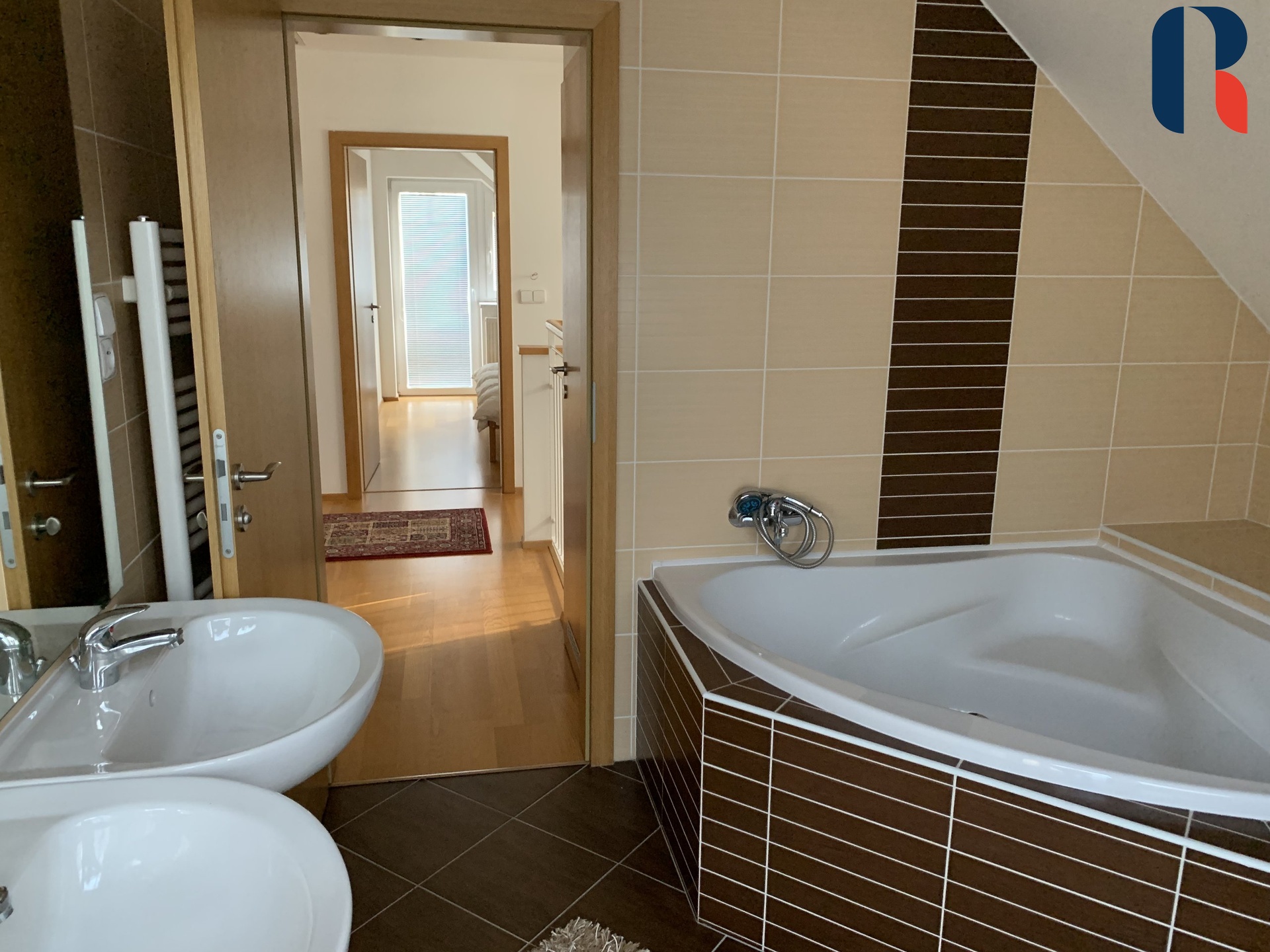 Nabízíme Vám rodinný dům k pronájmu v klidné lokalitě Klášterecká, Praha 8 - Dolní Chabry. Samostatně stojící dům na velkorysém rohovém pozemku o výměře 636 m2 je ideální pro kombinaci vlastního bydlení a podnikání. Pouze bydlení či podnikání je též možné. Dvoupodlažní dům o dispozici 4+kk s garáží (173 m2), je ve velmi dobrém stavu. Nabízí pohodlné bydlení i reprezentativní prostory k podnikání (kancelář, showroom, jednací místnost) a to v klidné, ale dobře dostupné lokalitě na okraji Hlavního města. V prvním podlaží se nachází garáž, vstupní chodba, koupelna s technickou místností. Hlavně však srdce celého domu -hlavní místnost o výměře cca 55 m2 s velkým prosklením a vstupem na zahradu. Aktuláně není istalována kuchyňská linka, po dohodě ji lze nainstalovat. Jinak je dům částečně zařízen. Ve druhém podlaží jsou tři neprůchozí pokoje (2x11 m2, 35 m2) , koupelna s vanou a spojující chodba, ze které je přístup na půdu (další úložný prostor). Dům ve velmi dobrém stavu, topení a ohřev vody zajišťuje plynový kotel, na oknech elektrické žalužie, zabezpečovací systém, prostorná garáž. Další možnost parkování na pozemku či v těsném okolí. Rezidenční čtvrť, klídné místo pro práci i odpočinek. Výborná a klidná lokalita s dobrou dostupností do centra. Zastávka busu i nočního je 5 minut pěšky, busem na metro "C" Kobylisy 7 minut. Budoucí zastávka tramvaje, by měla být zprovozněna v roce 2027 s novou tramvajovou tratí do Zdib. V okolí se nachází dostatek MŠ a ZŠ a veškerá občanská vybavenost. V sousedství: venkovní posilovna Fitpark Klášterecká, Ďáblický háj vhodný pro běhání a procházky i přírodní park Drahaň-Troja vše několik minut pěšky. Dále např. cyklostezka u Vltavy, či devíti jamkové golfové hřiště Golf Chabry a mnoho dalšího Měsíční nájemné 57.000.-Kč, poplatky a energie cca 10.000.-Kč. Celkové měsíční náklady do 67.000.-Kč (záleží na individuální spotřebě energií, které se převedou na nájemce). Nezmeškejte tuto výjimečnou příležitost a kontaktujte nás ještě dnes! Doporučujeme. Volný ihned.