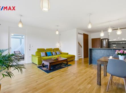 Pronájem rodinného domu 5+kk s garáží, podkrovím, terasou, zahrádkou a FTV - Hostavice, Praha 14
