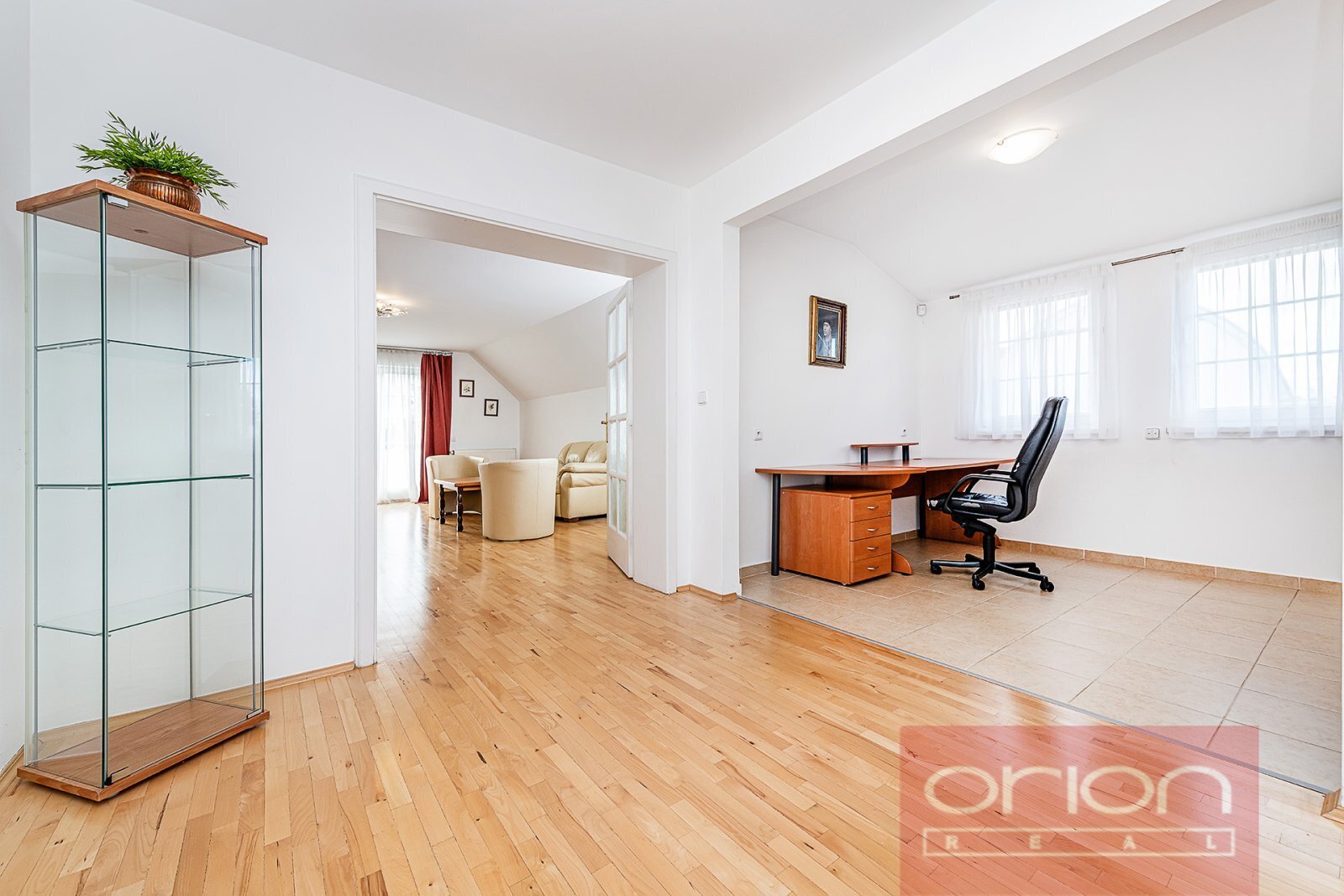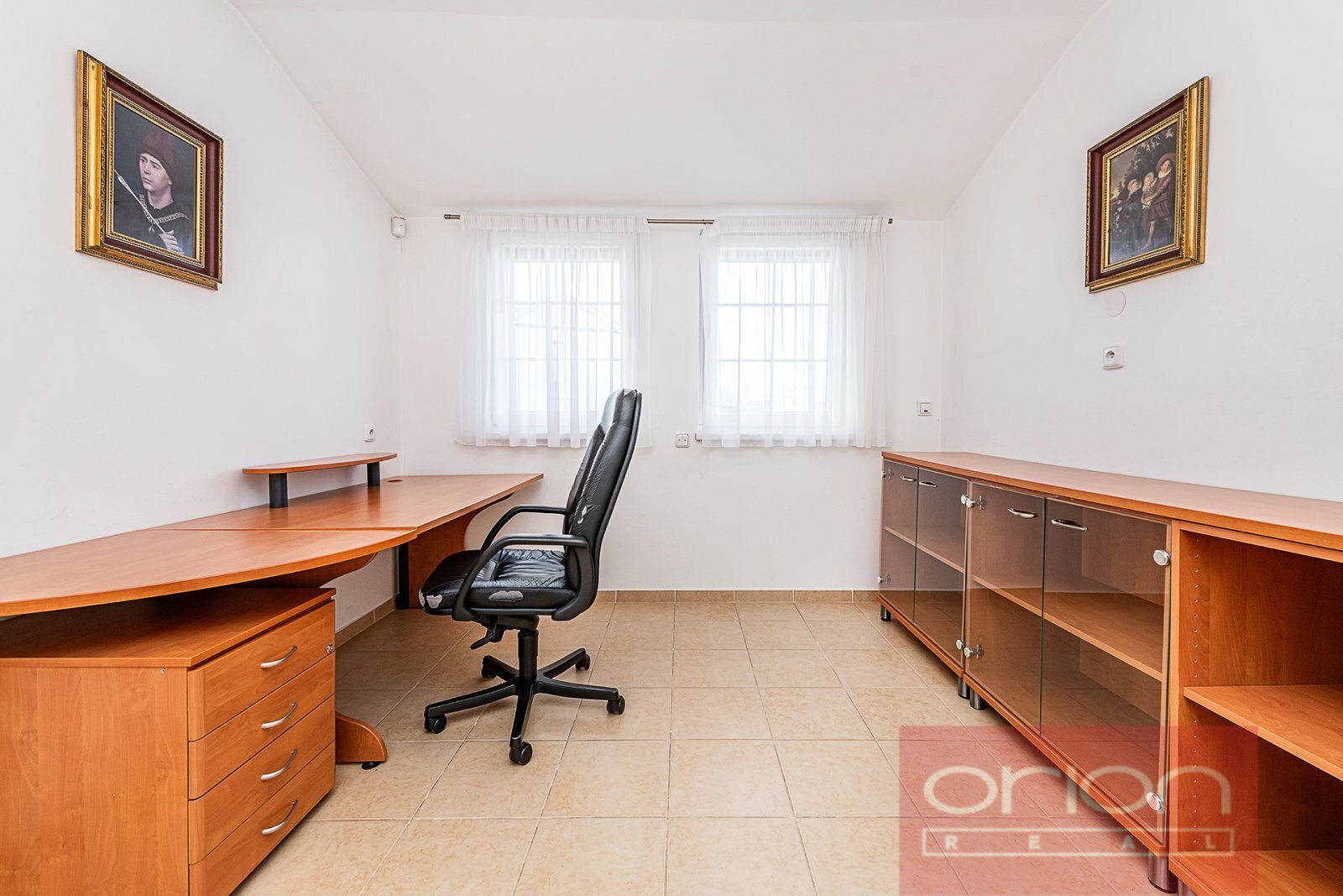 Nabízíme k pronájmu prostorný rodinný dům s dispozicí 7+1 se zahradou a bazénem v klidné oblasti Prahy 6 - Suchdol. Dům o celkové ploše 253 m2 nabízí v přízemí vstupní předsíň, prostorný obývací pokoj s jídelní částí, krbem a přímým vstupem na terasu s bazénem, samostatnou kuchyn se všemi spotřebiči, dvě ložnice, koupelnu, samostatná toaleta pro hosty a technickou místnost. V horním patře je druhý obývací pokoj/herna se vstupem na balkon, dvě ložnice, pracovní kout, koupelnu a úložný prostor. Suterén domu nabízí rozsáhlé úložné prostory, sprchu, toaletu a garáž. Nízkonákladový dům je vybavený úsporným topným systémem se solárními kolektory, součástí vybavení je centrální vysavač, elektrické žaluzie, podlahové topení, parkety, dlažba a koberce. Udržovaná zahrada s ovocnými stromy o velikosti 800 m2 zajišřuje dostatek soukromí i příjemný prostor k relaxaci Dobrá dopravní dostupnost do centra, do mezinárodních škol, na mezinárodní letiště Václava Havla a dálniční síť. V místě je veškerá občanská vybavenost:obchody, restaurace, zdravotnické zařízení, dětská hřiště, mateřské a základní školy. Oblíbená lokalita s dostatkem zeleně, nedaleko přírodní rezervace Údolí Únětického potoka a přírodní rezervace Tiché Údolí.