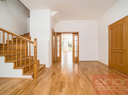 Nabízíme k pronájmu luxusní nezařízený rodinný dům 7+kk ve vyhledávané lokalitě v Praze 6 - Nebušice s pěší dostupností do mezinárodní školy ISP. Dům má celkovou plochu 400 m² nabízí v přízemí vstupní halu s šatnou, prostorný obývací pokoj s krbem a se vstupem na terasu a zahradu, plně zařízenou moderní kuchyň s jídelnou, pracovnu, koupelnu s jacuzzi a samostatnou toaletu. V horním patře je terasa o velikosti 15 m², 5 ložnic, dvě z nich mají k dispozici společnou koupelnu se sprchou a toaletou, jedna z ložnic má vstup na balkon, samostatná koupelna se sprchou a toaletou, šatna s vestavěnými skříněmi. Dům má obytné podsklepení, které je možno využít jako herna nebo tělocvična a je zde technické zázemí s plynovým kotlem a prádelnou vybavenou pračkou a sušičkou. K vybavení domu patří dřevěné podlahy v obytných místnostech, v kuchyni a koupelnách kvalitní dlažba, alarm garáž pro 2 auta a udržovaná zahrada o velikosti 850 m². Dům nabízí příjemné bydlení v Nebušicích s dobrým spojením do centra, na letiště, na stanici metra Bořislavka, v blízkosti je přírodní rezervace Divoká Šárka.
