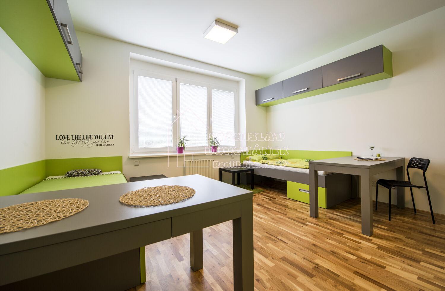 Ke dlouhodobému pronájmu je Vám k dispozici tento samostatný pokoj s kuchyňským koutem, Praha 8-Kobylisy, ul. Střelničná, 1 minutu chůze od metra C-Ládví. Tento neprůchozí a uzamykatelný pokoj je situován ve dvojpokojovém bytě. Každý z pokojů v bytě má vlastní kuchyňský kout s ledničkou, indukční varnou deskou, digestoří, myčkou a multifunkční troubou. Pokoj je vybavený: 2 postele, 2 stoly, úložné prostory. Společné části bytu jsou koupelna s vanou, 2 umyvadly, pračkou se sušičkou a dále samostatné WC s umyvadlem a vstupní chodba se skříní. Pokoj je určen pro 1 osobu bez domácích mazlíčků (vzhledem ke druhé spolubydlící ve vedlejším pokoji - ženě - hledám do tohoto pokoje primárně ženu). Měsíční nájem je 11.500,- Kč + zálohy na služby a energie 2.500,- Kč/měsíc. Internet je poskytován jako bonus. Vratná kauce je 23.000,- Kč. Provize za zprostředkování je 14.000,- Kč. Nájem se platí do 15. dne měsíce, za který se platí (např. do 15.3. za březen, do 15.4. za duben atd.). Pro více informací nebo termín prohlídky kontaktujte prosím makléře.