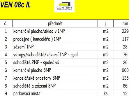 Pronájem skladu, výrobních prostor, sídla firmy , celkem 1591 m², Praha 9 - Horní Počernice. V zastoupení majitele a bez provize nabízíme kvalitní sklad nebo výrobní a prodejní prostory s viditelností z dálnice D10, přímo u exitu č. 3. - existující prostory, ihned k dispozici, - prostory v přízemí 450 m² a 3. NP komerční budovy 1121 m² + schodiště 20 m² - přímo u sjezdu z R10 v Horních Počernicích, - přímý vjezd v úrovni vozovky, - vjezdová vrata 6 m x 4 m, - prostory jsou vytápěné, kvalitně zateplené, - jedná se o velice univerzální prostory s různým druhem využití, - světlá výška přízemí 6,5 m, v 3NP 3m, - nákladní výtah nosnost 1t, - prosklený showroom, prodejna s osobním vstupem pro zákazníky, - 12 parkovacích míst před budovou k dispozici, - frekventovaná lokalita, viditelnost, prestiž, - rozpis pronajímaných ploch této jednotky naleznete ve fotografiích, Cena na vyžádání. Fotografie jsou pouze ilustrační, z již proběhlé stavby. Pro více informací nás kontaktujte, rádi Vám zajistíme prohlídky.