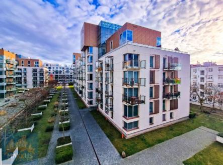 K okamžitému nastěhování nabízíme byt v rezidenci Korunní Dvůr s nonstop recepcí, ostrahou a společným upraveným vnitroblokem; která je určena klientům, kteří hledají moderně řešené bydlení kousek od centra Prahy, a to na Vinohradech, Praha 2 – rezidence je přímo u zastávky TRAM a docházkové vzdálenosti ke stanici metra „A“ Flora. Byt se nabízí vybavený nábytkem (viz. fotogalerie). Jedná se dispozičně o 3+kk s užitnou plochou 95,66 m2 a lodžií 21 m2. K bytu rovněž patří sklepní kóje a dvě parkovací garážová stání v suterénu domu, která jsou již zahrnuty v ceně nájemného. Dispozici bytu: vstupní předsíň s vestavěnou skříní, prostorný obývacího pokoje s vybavenou kuchyňskou linkou a jídelnou. Z obývacího pokoje je výstup na východně orientovanou lodžii, na kterou lze vstoupit i z manželské ložnice. Dále je zde druhá ložnice s vlastní en-suit komorou a koupelna s vanou a pračkou, samostatná toaleta. Výhodou bytu je dostatek úložného prostoru, bezpečnostní dveře, videotelefon či vstup na čipovou kartu. Vytápění podlahovými konvektory se zdrojem tepla z centrální kotelny v domě. Přímo na v areálu jsou nákupní možnosti v podobě supermarketu Billa, restaurace a v okolí mnoho dalšího. Zálohy na služby ve výši 10.000,- Kč (spotřeba teplé a studené vody, vytápění, security, recepce, úklid, osvětlení, služby za garážová stání apod.) + převod spotřebované elektřiny. Kauce jeden měsíční nájem se službami + provize RK. Fotografie mohou místnosti zkreslovat a proto doporučujeme osobní prohlídku.