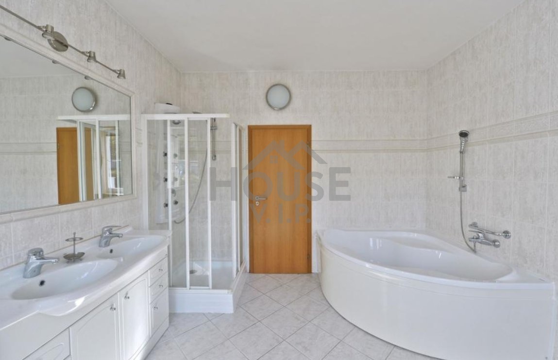 Nabízíme k pronájmu prostornou, nadstandardně vybavenou vilu, situovanou v klidné a prestižní rezidenční čtvrti Smíchova, přímo u přírodního parku Prokopské údolí. Tento objekt spojuje soukromí a komfort s výjimečnou lokalitou, která nabízí rychlou dostupnost do centra města, na městský okruh i ke známým mezinárodním školám (např. Německá a Francouzská). Vila je vhodná jak pro reprezentativní firemní sídlo nebo kanceláře, tak pro komfortní rodinné bydlení. Dispozice a využití prostor: Přízemí: Elegantní vstupní hala s dostatkem přirozeného světla. Prostorný obývací pokoj s krbem a elegantním schodištěm. Samostatná kuchyň se spíží, jídelna vhodná pro formální i neformální setkání, pracovna, šatna a toaleta pro hosty. Přímý vstup do garáže zajišťuje komfortní a bezpečný přístup. 1. patro: Tři samostatné ložnice s vlastními koupelnami a přístupem na balkony či terasy. Hlavní ložnice disponuje šatnou a nabízí panoramatický výhled na Prahu. Druhá ložnice je vybavena pracovnou, což umožňuje kombinovat soukromí a pracovní prostor. Třetí ložnice s koupelnou a terasou poskytuje dostatek komfortu a flexibility. Snížené přízemí: Rozsáhlý víceúčelový prostor s vlastním vstupem z ulice, ideální pro kanceláře, školící centrum, studio či klientské oddělení. Dále je zde kuchyňka, koupelna, prádelna a skladovací prostory. Úroveň zahrady: Zakrytý vnitřní bazén, sauna, sprcha, toaleta a technické zázemí. Přímý vstup na terasu a zahradu zajišťuje komfortní relaxaci nebo možnost pořádání firemních či společenských akcí. Vybavení a technický standard: Dřevěné a plovoucí podlahy, keramická dlažba, francouzská okna s dostatkem denního světla, vestavěné skříně, plynové vytápění, žaluzie a zabezpečovací systém (alarm). Vila kombinuje moderní technologie s nadčasovou elegancí a pohodlím. Parkování: Dvojgaráž (37 m²) a další parkovací místa přímo před domem zajišťují dostatek parkovací kapacity pro obyvatele i návštěvy.