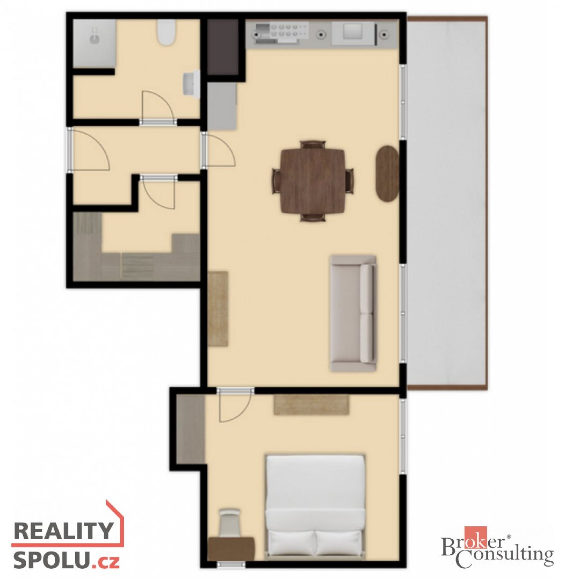 Pronájem vybaveného bytu 2+kk s terasou, 9. NP – Hloubětín, ul. Domalípova - plocha 66 m2 Nabízím k pronájmu světlý, plně vybavený a prostorný byt moderního domu v Hloubětíně. Velkou předností je klidný vchod – pouze 3 byty na patře – a krásný otevřený výhled na Prahu, který vás jen tak neomrzí. V domě jsou k dispozici 2 výtahy. Dispozice bytu: Prostorná vstupní chodba Samostatná šatna a úložný prostor o velikosti téměř 5 m² Koupelna s WC Obývací pokoj s moderním kuchyňským koutem a spotřebiči Samostatná ložnice s manželskou postelí Terasa 12 m² přístupná z obývacího pokoje – ideální na ranní kávu i večerní relax s výhledem na město Vybavení a komfort: Dálkově ovládané rolety Somfy v celém bytě Klimatizační jednotky v každé místnosti Moderní kuchyňská linka včetně spotřebičů Kompletní vybavení nábytkem Dostatek úložného prostoru Součástí nájmu je také garážové stání v -3. NP a sklepní kóje, což výrazně zvyšuje komfort bydlení. Byt působí vzdušně, má praktickou dispozici a díky umístění nabízí dostatek světla i soukromí. Kombinace terasy, klimatizace, elektrických rolet a parkovacího stání z něj dělá velmi komfortní bydlení bez kompromisů. Lokalita: Hloubětín nabízí kompletní občanskou vybavenost – MHD v docházkové vzdálenosti, metro, obchody, služby i zeleň. Byt je ideální pro jednotlivce nebo pár, kteří hledají moderní a pohodlné bydlení s výhledem. Podmínky pronájmu: Nájem: 30 000 Kč / měsíc Služby: 5 000 Kč / měsíc Vratná jistina: 60 000 Kč Odměna RK: 30 000 Kč + DPH Pro více informací nebo domluvení prohlídky mě neváhejte kontaktovat.