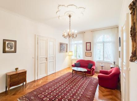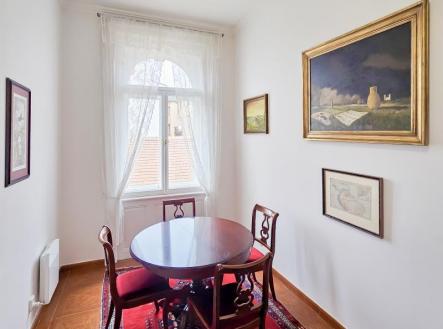 Pronájem výjimečného bytu 3+1 s balkonem a výhledem na Hradčany, Konviktská, Praha 1