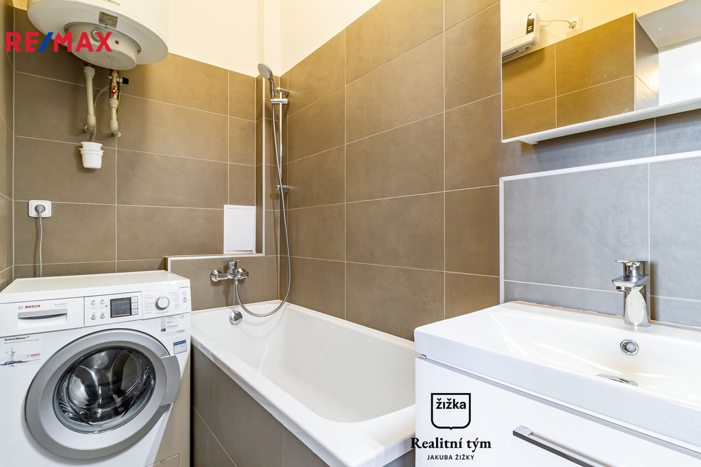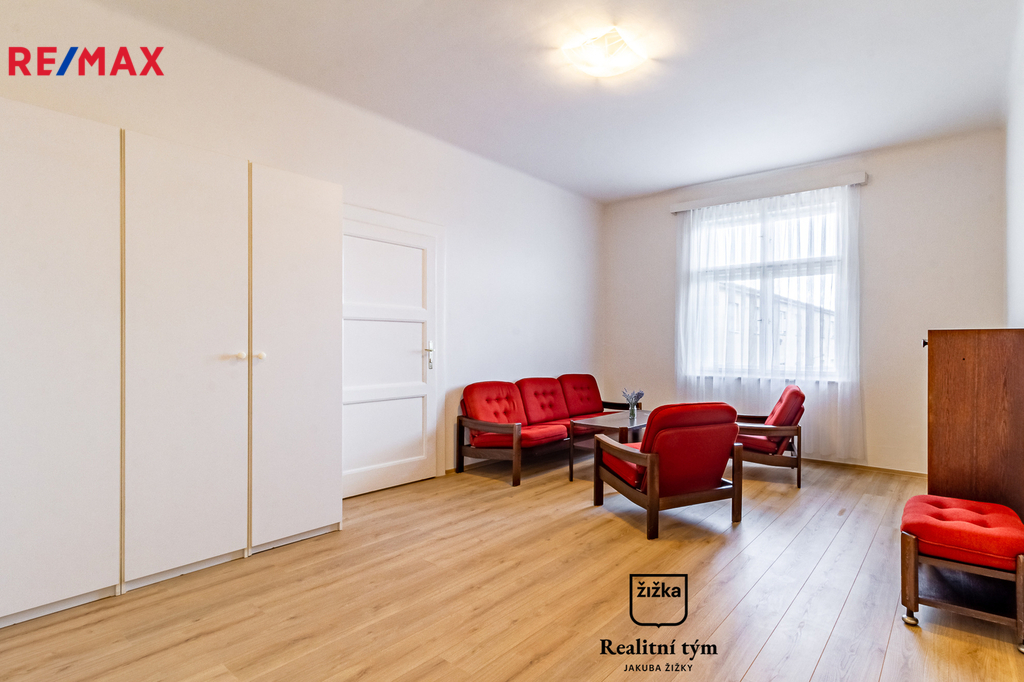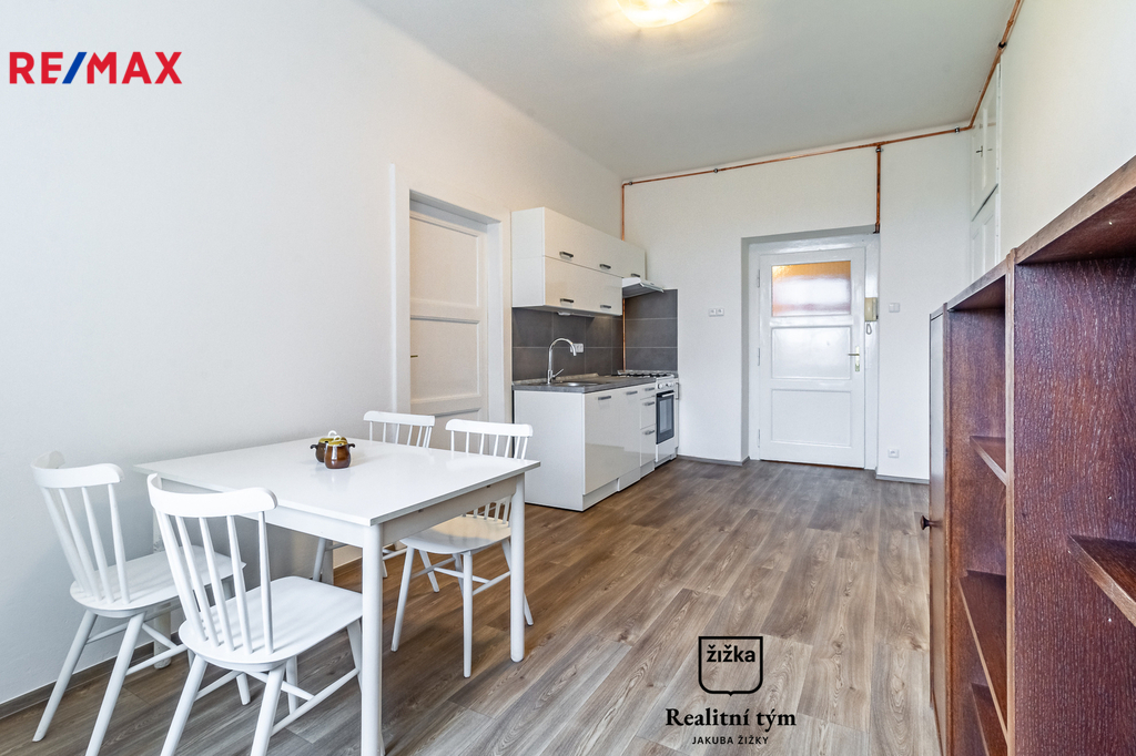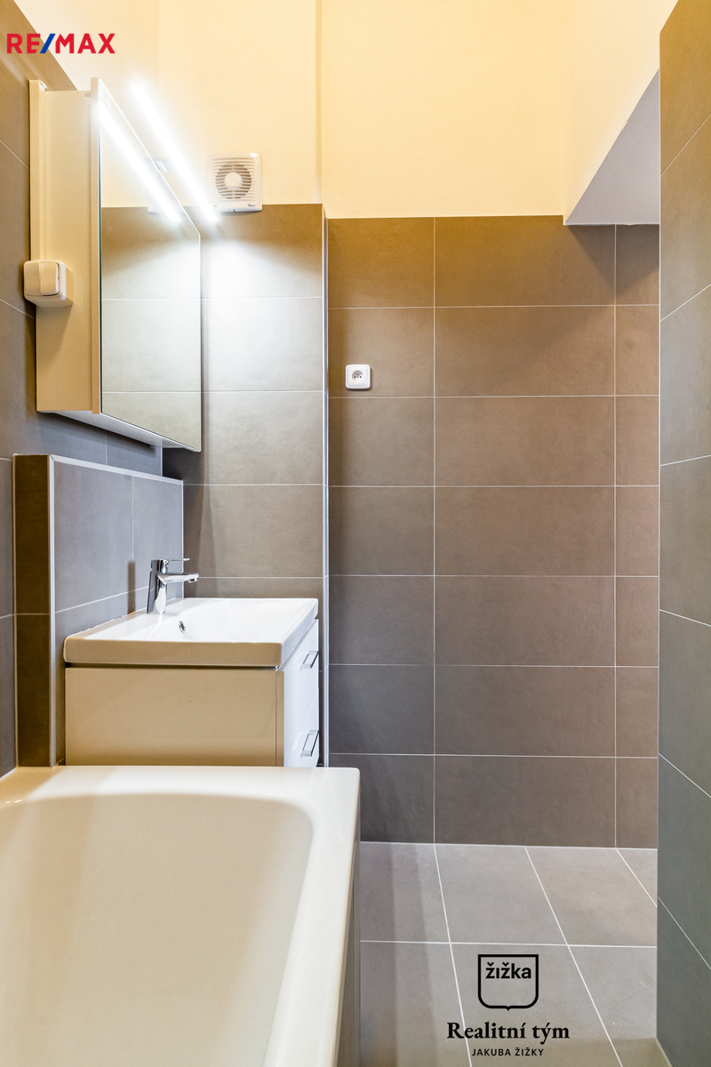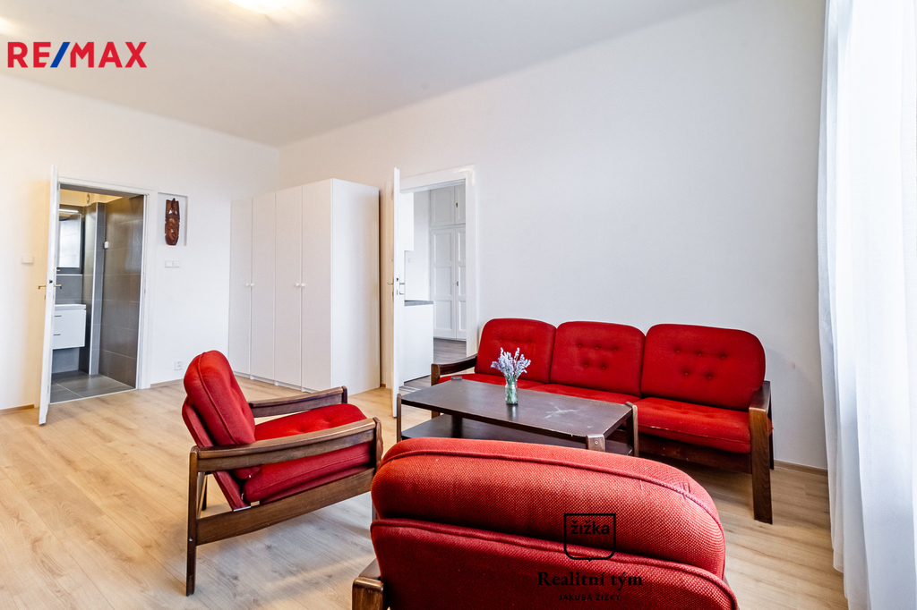 Pronájem bytu 1+1 (2+KK) v ulici Náměstí Jiřího z Lobkovic, Praha 3 - Vinohrady Exkluzivně Vám k dlouhodobému pronájmu nabízíme byt po nedávné kompletní rekonstrukci o dispozici 1+1 / 2+KK a o celkové užitné ploše 50m2 v centru města. Byt nacházející se v šestém nadzemním podlaží se skládá z kuchyně s jídelnou, ložnice, toalety, koupelny a předsíně. Byt je vzhledem k velikosti vhodný pro dvě osoby. Malé zvíře možné po dohodě. V bytě se nachází zánovní kuchyň s plynovým sporákem. Nábytek na fotografiích je možné po dohodě odstěhovat. Celý dům, včetně vnitřních prostor, je ve vynikajícím stavu a pravidelně udržovaný. K bytu také náleží sklepní kóje o velikosti 5m2. Vynikající lokalita Prahy 3 s kompletní občanskou vybaveností a v centru města. V blízkosti se nachází OC Atrium Flora a spousta parků vhodných k procházkám a sportovnímu využití. Výborná dostupnost DP Praha tramvajová zastávka Olšanské hřbitovy cca 150m od domu, stanice metra Flora cca 400m od domu. Vratná kauce ve výši jednoho nájmu. Provizi hradí majitel. Preferujeme nájemní smlouvu na dobu min. 1 roku. PENB nebyl dodán, uvádíme energetickou třídu G.