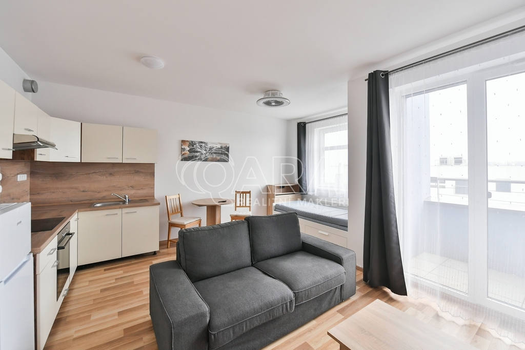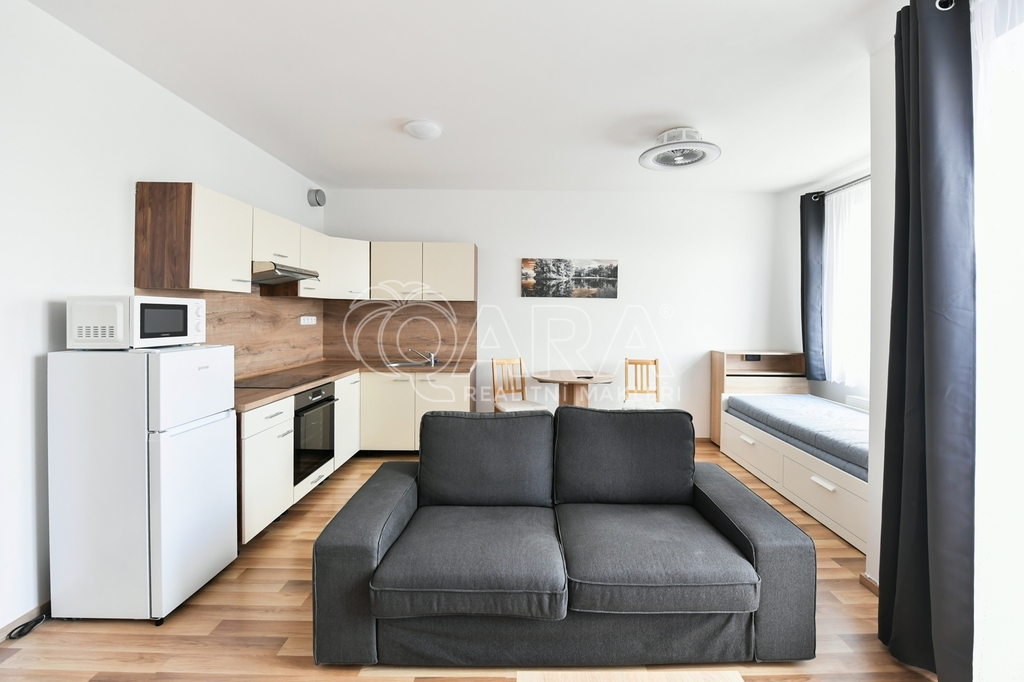 Exkluzivní nabídka pronájmu kompletně zařízeného bytu o dispozici 1+kk s lodžií a parkovacím stáním v oblíbeném projektu Vivus, ul. Karla Guta, Praha 10 - Uhříněves. Byt o výměře 34,2 m2 (vnitřní plocha + sklep) s lodžií (2 m2) je umístěn v 5.NP novostavby bytového domu z roku 2020. Byt se pronajímá kompletně zařízen - vybaven kuchyňskou linkou s el. varnou deskou, troubou, lednicí, mikrovlnnou troubou. Dále je součástí pračka, jídelní stůl, 2x židle, sedací souprava, konferenční stolek, rozkládací postel a šatní skříň s věšákem v předsíni. Koupelna je společná s WC. V bytě je položena plovoucí podlaha, v koupelně a v chodbě je dlažba. Orientace oken na východ. K bytu patří sklepní kóje v suterénu domu a venkovní parkovací stání. Vytápění zajišťuje centrální plynová kotelna v domě. Nízké měsíční poplatky 2.650,- Kč + elektřina převodem. Kauce ve výši jednoho nájmu, provize ve výši jednoho nájmu. Kuřáci a domácí mazlíčci nejsou vítáni. Zastávka MHD je umístěna v rámci projektu - 14 minut BUS na metro C – Háje nebo další spoje na metro A. Vlakové nádraží je v pěším dosahu (5 minut pěšky od domu) a dostanete se odsud za 19 minut na Hlavní nádraží. Dopravní obslužnost pak doplňuje výborná dostupnost na dálnici D1 a tím i na Pražský okruh, dále pak na Štěrboholy. V projektu Vivus naleznete vše potřebné, přímo u domu se nachází supermarket BILLA a výborná restaurace. V pěším dosahu je základní škola a přírodní památka Obora v Uhříněvsi, v centru městské části je pošta, kavárna, bankomat. Pokud máte zájem o prohlídku, vyplňte prosím formulář níže, co nejdříve se Vám ozveme.