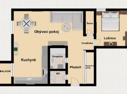 Pronájem zařízeného bytu 2+kk, 56 m2, balkon, Střimelická, Praha 4