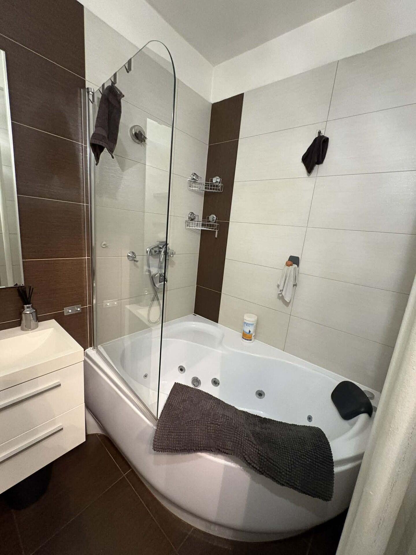 Pronájem moderního, plně zařízeného bytu 2+kk, 56 m² + balkon 3 m², Praha 4 – Záběhlice, ul. Střimelická. Byt se nachází ve 2. NP domu s výtahem. Dispozici tvoří předsíň s vestavěnými skříněmi, vzdušný obývací pokoj, plně vybavený kuchyňský kout (plyn. sporák, trouba, lednice s mrazákem), ložnice s manželskou postelí a nábytkem, velká šatna, koupelna s masážní vanou a pračkou, samostatné WC. Klimatizace. Sklepní kóje k dispozici. Parkování u domu bez modrých zón. Klidná lokalita s výbornou dostupností – MHD 1 min na Bus i Tram, na Kačerov dorazíte tramvají za 12 minut, na metro Roztyly dorazíte busem 135 za 12 minut, Albert v pěší vzdálenosti. Vhodné max. pro 2 dospělé osoby, nevhodné pro rodinu s dětmi. Mazlíčci po domluvě. Volný ihned. Nájem: 21 500 Kč Poplatky: 3 730 Kč + elektřina na nájemce Kauce: ve výši nájmu a poplatků + provize RK Byt je připraven k okamžitému nastěhování. Foto se připravuje.