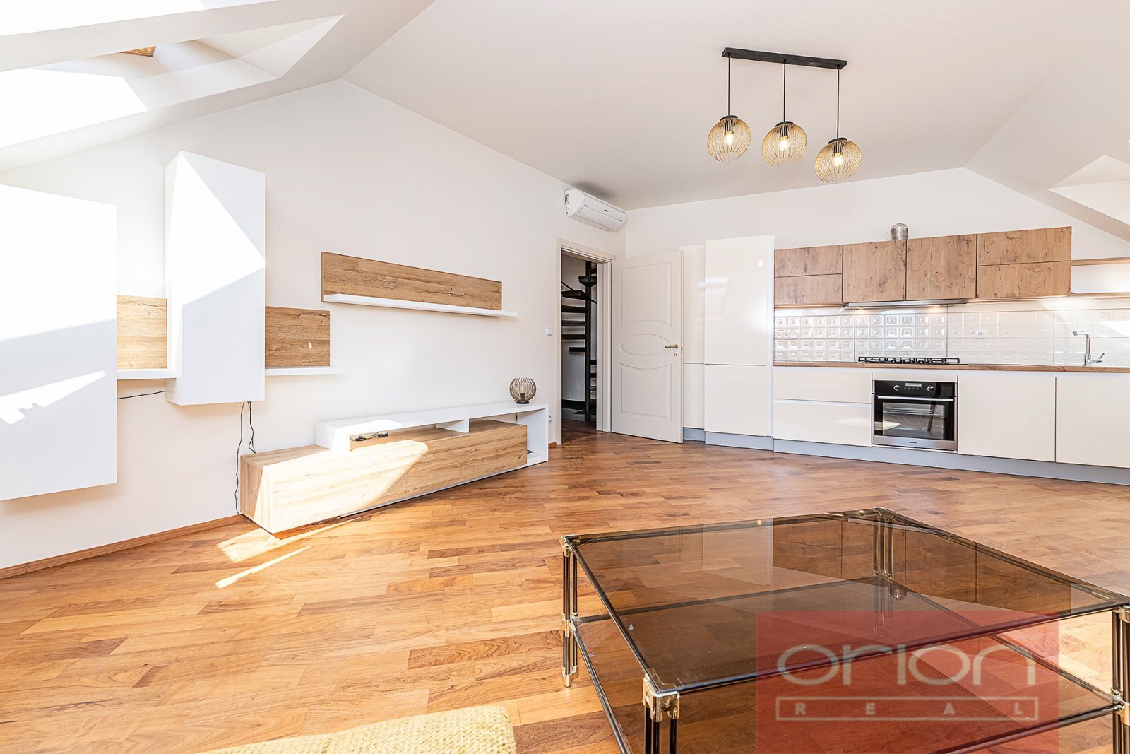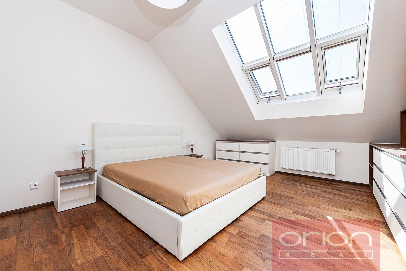 Nabízíme k pronájmu nově zařízený byt s klimatizací o velikosti 3+kk v 5. patře kompletně zrekonstruovaného secesního domu s výtahem. Byt s plochou 101 m² nabízí v nižším patře velkou vstupní chodbu, prostorný obývací pokoj spojený s kuchyní vybavenou všemi spotřebiči a krásným výhledem na okolní domy, ložnici s postelí a vestavěnými skříněmi, koupelnu se sprchou, toaletou a bidetem, samostatnou toaletu, komoru. Z chodby vede schodiště do pokoje, který lze využít jak pracovnu nebo druhou ložnici. K vybavení bytu patří dřevěné podlahy v pokojích, v ostatních místnostech dlažba, plynový kotel, velkoformátová okna, klimatizace. Dům je v oblíbené části Praha 3 - Žižkov, jen pár minut chůze od stanice metra Jiřího z Poděbrad a od parku Riegrovy sady. V místě je veškerá občanská vybavenost: obchody, restaurace, bary, bistra, v blízkosti nákupní centrum Flóra. Byt bude k nastěhování od 15.1. 2026, prohlídky po dohodě.