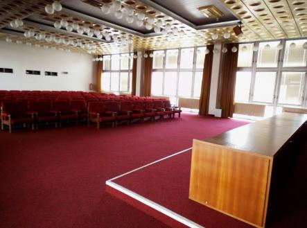 Majitel nabízí ve své administrativní budově v 1. patře k pronájmu zasedací sál o rozloze 233 m2 , míst k sezení min. 110. Cena za 1 hod. 600,-- + DPH. Prostor je vhodný k pořádání školení, přednášek, seminářů, schůzí a je možné ho využít i k natáčení. V budově l dispozici sociální zařízení, kuchyňka. Ostraha 12 hodin denně, o víkendech a svátcích 24 hodin denně. Dobrá dostupnost MHD. Prostor je vhodný i pro natáčení. V případě zájmu volejte paní Stránskou, tel. +420 602 180 364, email : info@ssrent.cz.