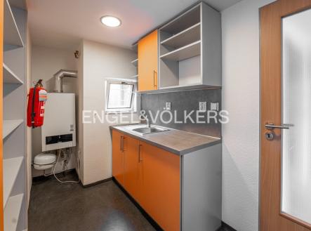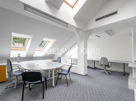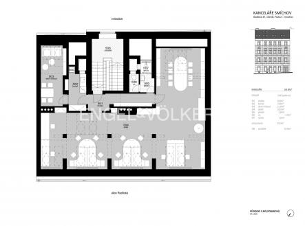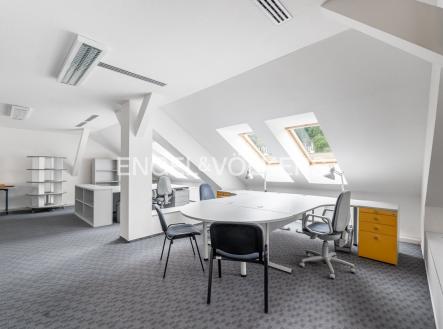 K dispozici je velkoprostorová kancelář, která disponuje velkým open space prostorem (103 m2), dále pak neprůchozí kanceláří, kuchyňkou a toaletami a sprchovým koutem. Prostory jsou ve 4. patře bez výtahu, vybavené kancelářským nábytkem a klimatizací. Vytápění zajišťuje samostatný plynový kotel, elektřina a voda mají podružné měření. Prostory jsou elektronicky zabezpečeny. Objekt je přímo u zastávky Braunova (tramvaje 7 a 21), dvě zastávky od centra Anděl. Parkování pro dvě auta ve dvoře je za 2 000 Kč/měsíc bez DPH, 9 300 Kč + přepis plynu poplatky. Pro více infromací kontaktujte realitní makléřku. Provize jeden měsíční nájem + DPH.