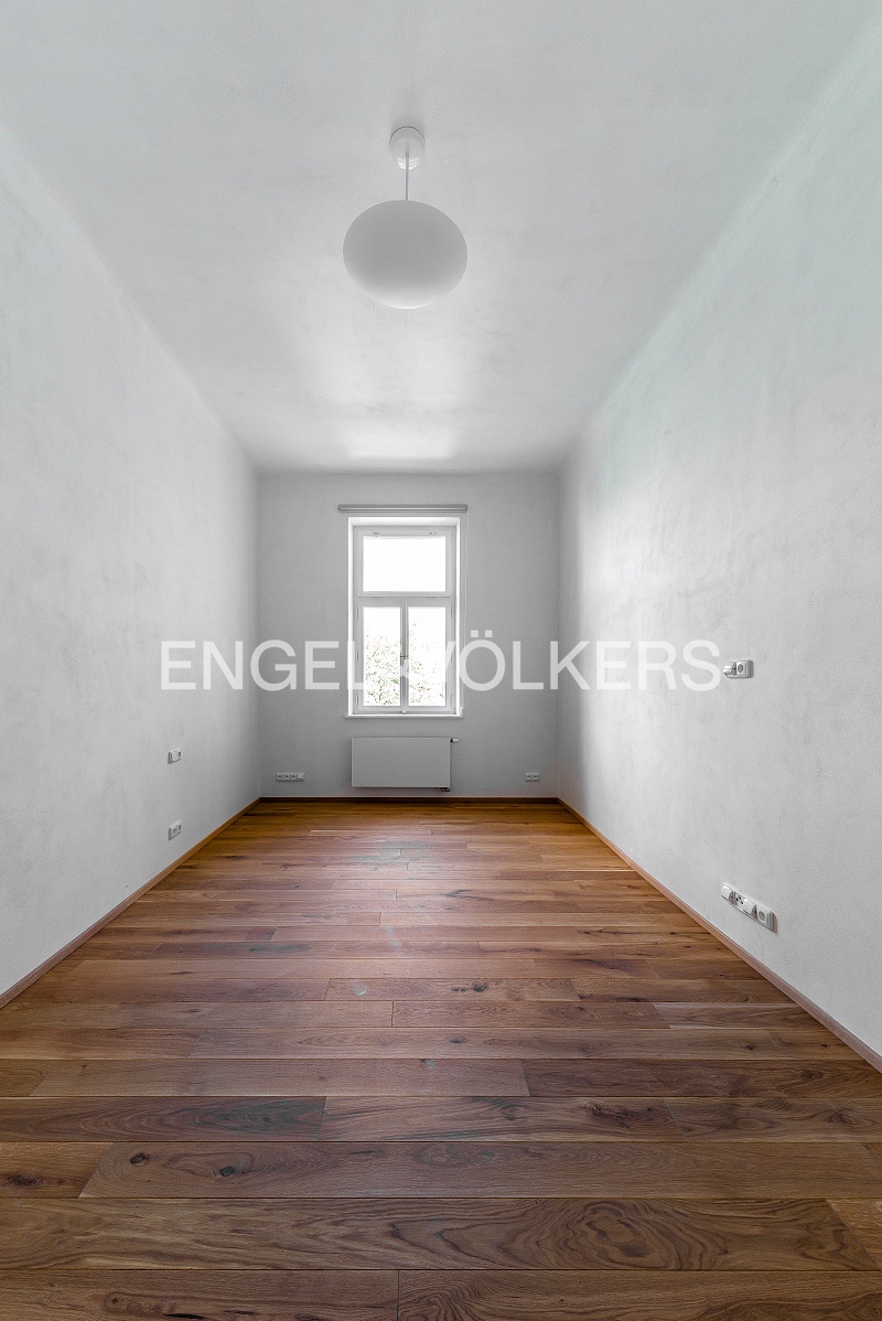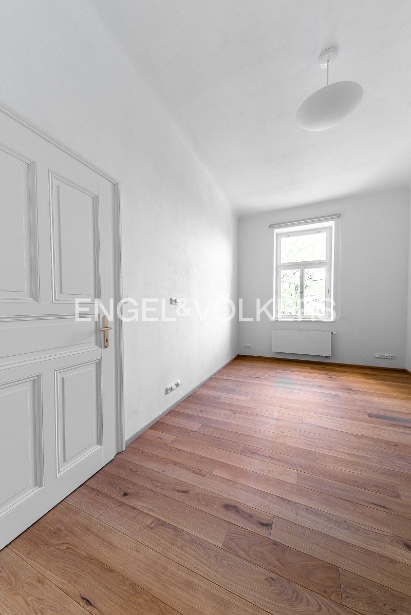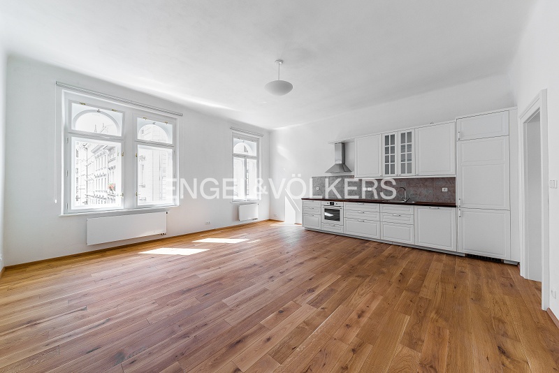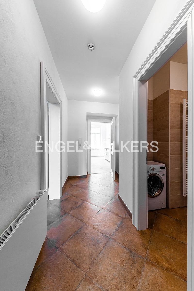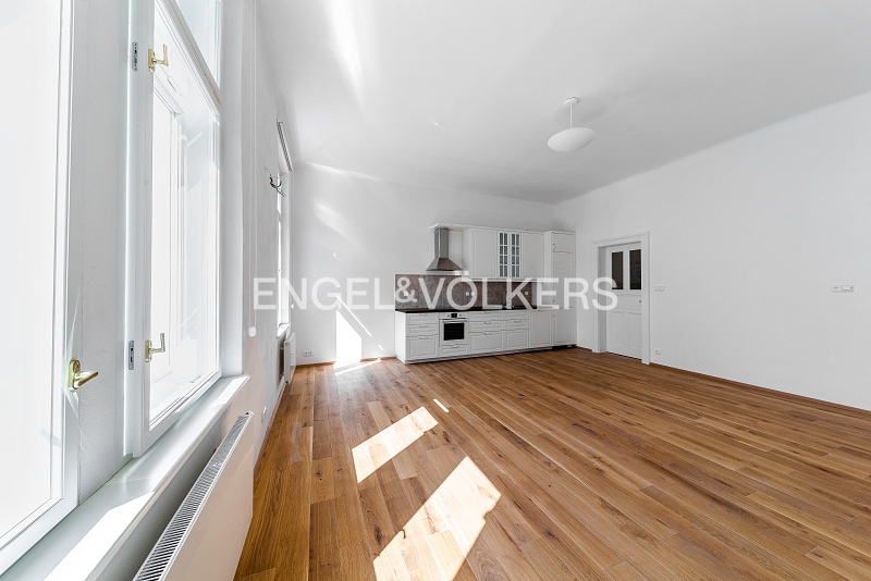 Historický činžovní dům z konce 19. století po kompletní rekonstrukci. Rekonstrukce dbala na zachování dobových historických prvků domu i bytu. Při rekonstrukci bytů byly použity pouze kvalitní materiály jako masivní dubové palubky, kvalitní obklady, sanita, repliky dveří, nová špaletová okna, designová světla ze Španělska. Srdcem celého bytu je prostorný světlý obývací pokoj s plně vybaveným kuchyňským koutem, který je orientovaný do klidné ulice. Ložnice s prostornou vestavěnou skříní. V koupelně se nachází vana se sprchovou zástěnou a pračka. V bytě dále nalezneme prostornou halu, která odděluje všechny místnosti. V domě je zcela nový výtah a společné prostory domu jsou velmi reprezentativní. Nová fasáda domu. Sklepní kóje, kryté parkovací stání na dvoře pod pergolou možné pronajmout za 2 000 Kč včetně DPH.