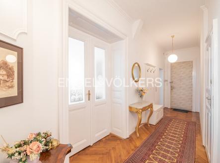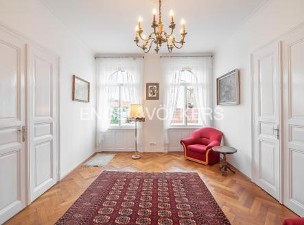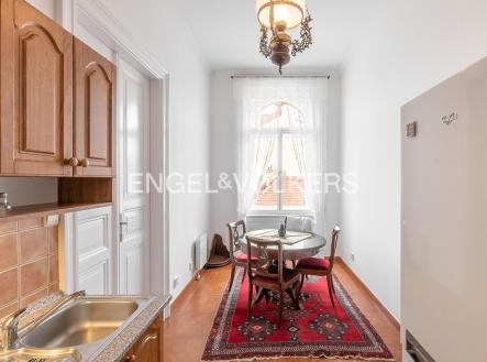 Historický rohový dům byl postaven na konci 19. století a pečlivě zrekonstruován před několika lety. Nyní je ve čtvrtém nadzemním podlaží připraven plně vybavený byt s dispozicí 3+1 s balkonem a výhledy na Pražský hrad. Dispozici bytu tvoří prostorná vstupní chodba, ze které je vstup do všech místností kromě relaxační rohové místnosti s balkonem. V bytě jsou dvě koupelny - jedna s vanou, druhá se sprchovým koutem. Ložnice s výhledy na Petřín je neprůchozí. Místnost s kuchyňskou linkou má dostatek prostoru pro jídelní stůl. Byt je možné využívat jako velkorysý jednoložnicový či dvouložnicový byt. Kvalitní materiály, dřevěné parkety, kvalitní špaletová okna a centrální vytápění tvoří celkový vyšší standard bytu. Byt je k nastěhování ihned.