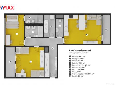 Prostorný byt 3+kk se dvěma lodžiemi, parkováním a výhledem do zeleně – Port Karolína
