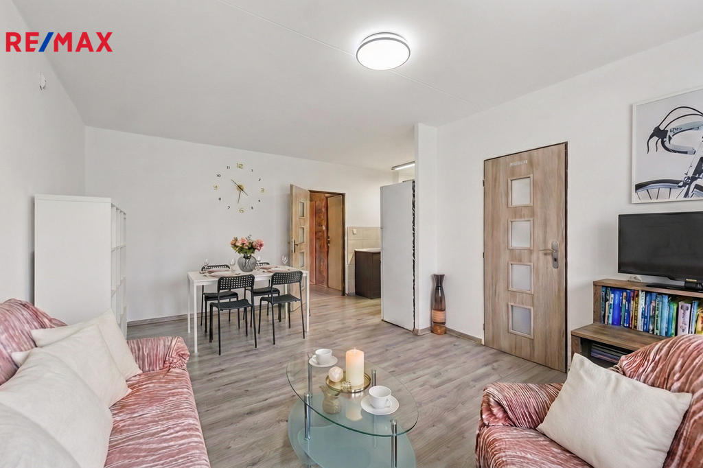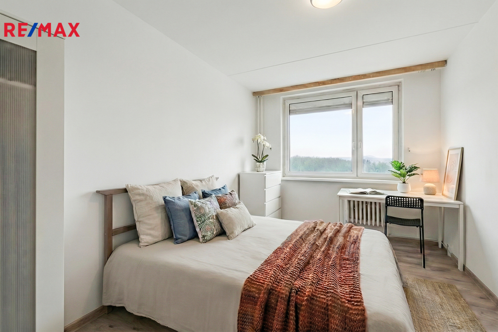 Prostorný byt 4+kk (+ zasklená lodžie a sklepní kóje) v 6.NP domu na adrese Boháčova 867/2, Praha 4 - Háje. Byt se prodává vč. vybavení (skříně, postele, matrace, kuchyně atd.) a nabízí se tak skvělá příležitost k jeho okamžitému pronájmu, bez nutnosti dalších investic. Byt má dle prohlášení vlastníka budovy z r. 2022 užitnou plochu celkem 69,71 m2, tzn. podlahová plocha dle nařízení vlády č. 366/2013 Sb. činí cca 73 m2 (+ lodžie cca 6,1 m2 + sklepní kóje 2,3 m2). Nachází se v 6. nadzemním podlaží osmipodlažního panelového domu, který je ve skvělém stavu a nadstandardně udržovaný - nová fasáda, zateplení, plastová okna s izolačními dvojskly, elektricky ovládané předokenní rolety, lodžie s posuvným zasklením a stíněním, prostorný výtah, zrekonstruované stoupačky i pěkné společné prostory, to vše činí bydlení v tomto domě vysoce komfortním. V domě je výborně hospodařící SVJ, aktuálně se na budově plánuje dokonce montáž fotovoltaického systému, jejíž náklady by měly být kompletně pokryty z dotací a fondu oprav. Původní dispozice bytu 3+1 byla změněna na stávající 4+kk, díky čemuž vznikl prostorný a moderně řešený obývací pokoj s kuchyňským koutem a k tomu navíc další místnost s oknem, využitelná např. jako pokoj pro hosty nebo pracovna. V bytě je i praktická komora, samostatné WC a koupelna v původním, ale udržovaném a funkčním stavu (umakartové jádro s novým rozvodem vody a sprchovým koutem). Ve většině bytu je ponechána původní elektroinstalace, avšak bytové jističe a rozvody v kuchyni byly v rámci úpravy dispozice již vyměněny a vše je tak připraveno k okamžitému bydlení. Další výhodou této nemovitosti je její strategická poloha. Městská část Praha 4 - Háje poskytuje výbornou dostupnost do centra města. Stanice metra Háje je jen pár minut pěšky. V blízkosti se nachází veškerá občanská vybavenost, včetně obchodů, škol, zdravotnických zařízení a rekreačního využití. Z obou ložnic je pak krásný výhled na Hostivařský lesopark, který se nachází v těsném sousedství. S ohledem na poptávku po bydlení v této lokalitě nabízí tento byt vynikající možnosti pro generování stabilního příjmu z pronájmu, stejně jako nabízí možnost vlastního komfortního bydlení na pěkném místě ve skvěle udržovaném domě.