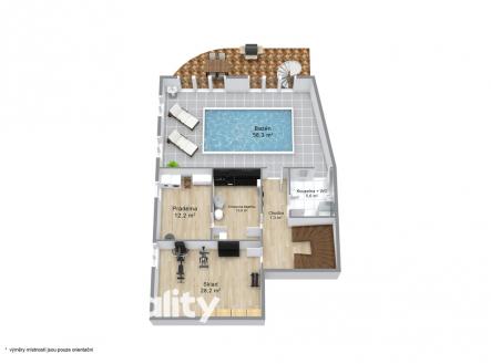 Nabízíme Vám unikátní příležitost ke koupi nadstandardního, prosluněného domu 5+kk s užitnou plochou 390 m² umístěného v srdci starých Stodůlek. Tento dům v sobě spojuje historii místa, kde kdysi stával místní koloniál, s nejmodernějšími technologiemi současnosti. Dům byl postaven s důrazem na kvalitu, funkčnost a detail pro vlastní potřebu majitelů. Nabízí tři plnohodnotná podlaží a zateplenou půdu s přípravou pro další rozšíření obytné plochy. • 2. NP (Klidová zóna): Tři ložnice, každá s vlastní walk-in šatnou. Hlavní koupelna je vybavena kameninovým dvojumyvadlem na míru, sprchou i vanou. Dále zde najdete pracovnu (hostinský pokoj) a komoru. • 1. NP (Společenské patro): dominantou je obývací pokoj se zabudovaným promítacím plátnem, stolem pro 8 osob a vstupem na zahradu. Kuchyně je vybavena spotřebiči Miele, žulovou pracovní deskou a dvojlednicí Liebherr s vinotékou, granitovým dřezem Franke a drtičem na odpad. Parní trouba i lednice jsou napojeny na vodu (výrobník ledu). Unikátní je propojení garáže přes velkou spižírnu přímo do kuchyně. Prostorná garáž je určena pro 2 vozy (výška 2,4 m) a ještě zbude úložný prostor + další 2 místa na pozemku za elektrickou bránou. Předsíň nabízí dostatek úložných prostor a koupelna disponuje sprchou, toaletou a pisoárem. • 1. PP (Relaxace a zázemí): Suterén nabízí technické zázemí, dílnu, sklad, koupelnu s toaletou a prádelnu se shozem prádla a prostor připravený pro vnitřní bazén nebo wellness se saunou a přímým vstupem na terasu. Dům je navržen jako tzv. chytrý dům s měsíčními náklady do 10 000 Kč. • Energie: FVE panely 12 kW se zeleným bonusem a přípravou na baterie. • Vytápění: podlahové vytápění ve všech patrech (plynový kotel Wolf) a klimatizace Toshiba (chlazení/topení) v každém pokoji. • Voda: obecní vodovod a dešťová jímka (50 m³) pro splachování WC a závlahu. Třístupňová filtrace vody na vstupu. • Smart Home: systém Siemens pro zónovou regulaci, ovládání žaluzií a osvětlení (připraveno k dokončení). Orientace na jih zajišťuje slunce po celý den. Zahrada je okrasná i užitná (třešeň, moruše, borůvky, angrešt, rybíz) s automatickou závlahou. Posezení na terase pod úrovní zahrady zajišťuje naprosté soukromí. Skvělá poloha s výbornou dostupností MHD – metro B Stodůlky 5 minut pěšky, v okolí škola, školka, obchody (Lidl, Billa, Kaufland, Makro), restaurace, lékárna, kavárny a park Central. Do OC Metropole Zličín nebo na Pražský okruh dojedete autem za pár minut. Dům nabízí nadstandardní prostor, moderní technologie a možnost dalšího rozšíření – ideální volba pro rodinu, vícegenerační bydlení i podnikání.