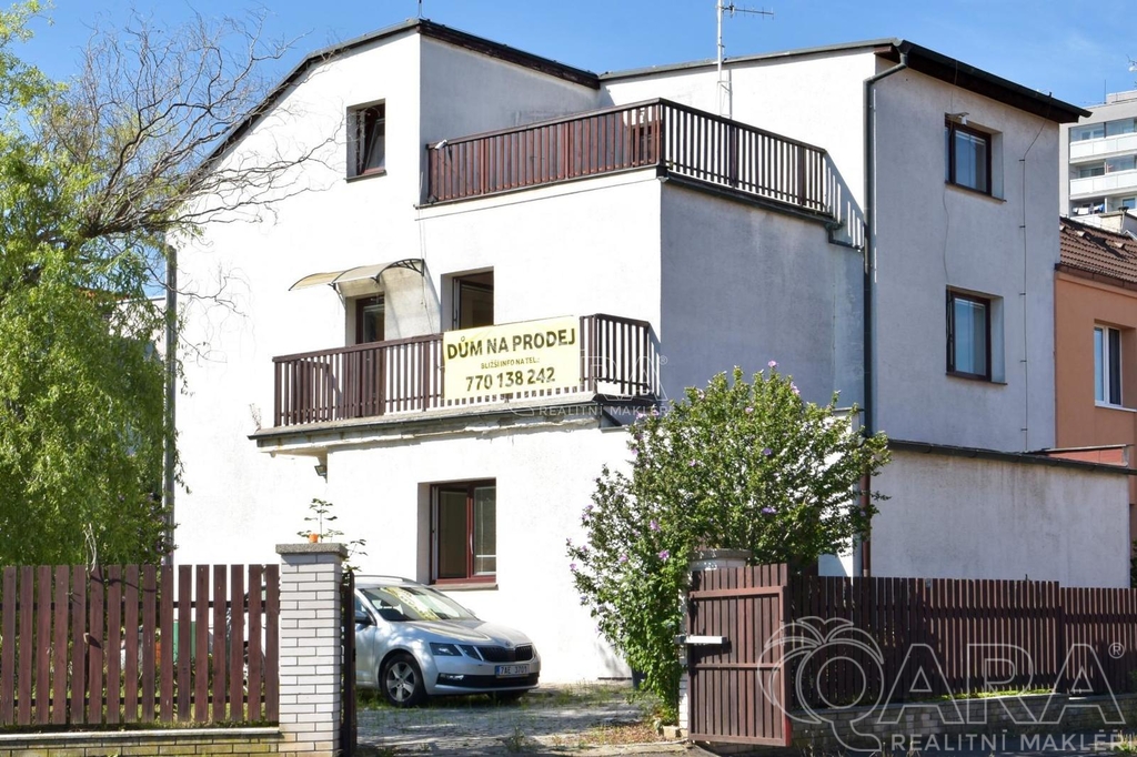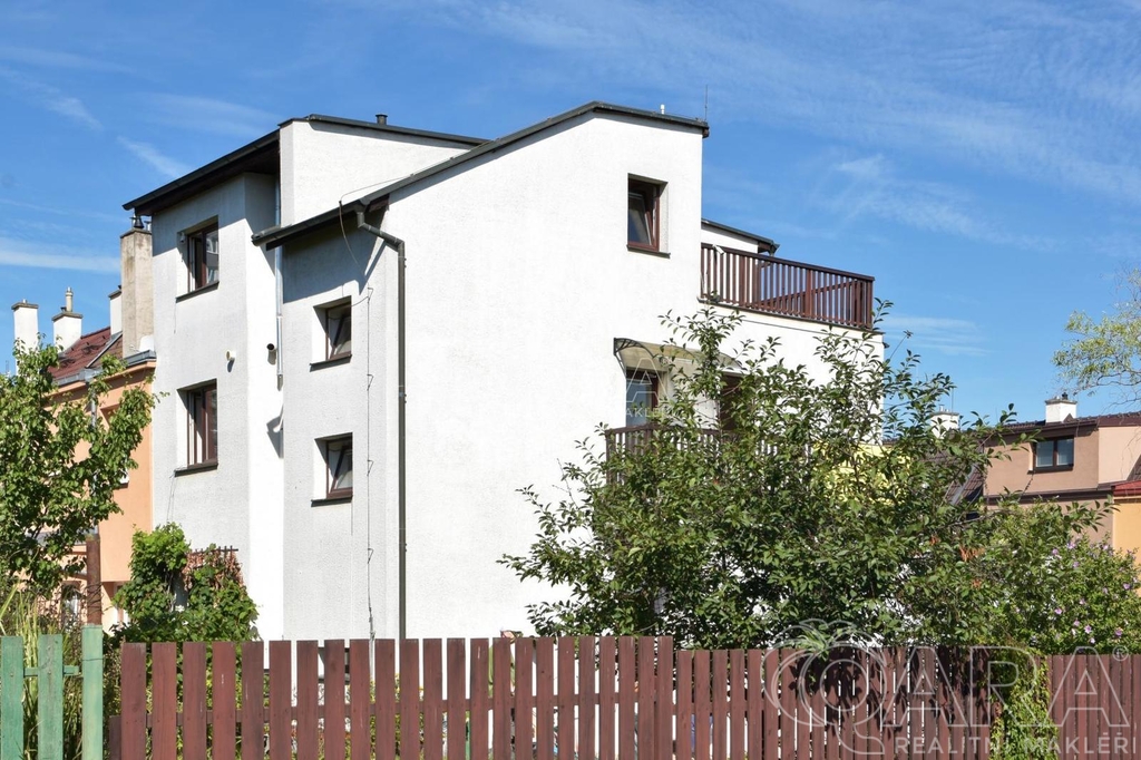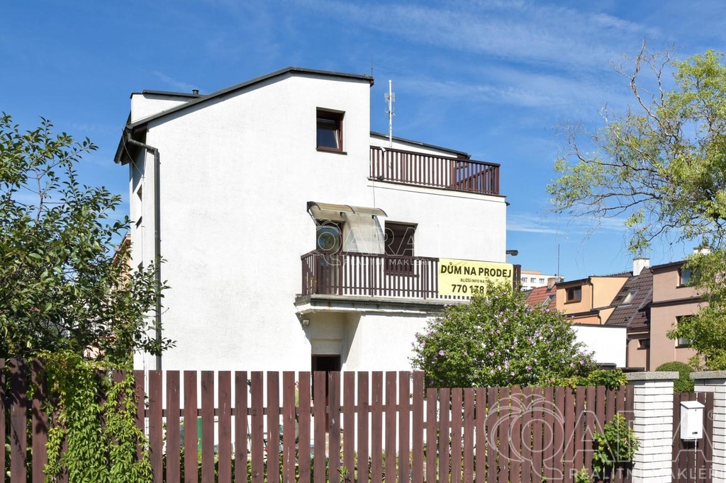 Hledáte zajímavý dům se zahradou pro bydlení nebo v kombinaci s podnikáním - nabízím k prodeji prostorný třípodlažní dům dispozice 6 + 2 s terasami, garáží a zahradou v Praze 10 - Zahradní město. Koncový uliční objekt, v letech 1993 a 1994 proběhla rekonstrukce během které se přistavělo poslední patro a realizovala se pochozí terasa (3NP). Při další rekonstrukci došlo k obnově a zateplení fasády domu, výměně původních oken za okna plastová s izolačním dvojsklem a realizovalo se nové vytápění domu. Celkově je dům v dobrém technickém stavu, ve 3NP si nový majitel dokončí úpravy podle svých představ. Zastavěná plocha objektu je rozšířila o plochu garáže v roce 1995 na nynějších 130 m2, zahrada se vzrostlou zelení poskytuje 400 m2. V 1PP jsou skladové a technické prostory celkem 27,4 m2 V 1NP jsou 2 pokoje s parketovými podlahami, samostatná místnost kuchyně, koupelna s WC (dlažba s podlahovým topením) a samostatná garáž, celkem 104,8 m2. před garáží najdeme několik parkovacích míst. V 2NP jsou 2 pokoje, samostatná místnost kuchyně a koupelna s WC, menší terasa, celkem 81,3 m2. V 3NP jsou 2 pokoje, chodba s přístupen na samostatné WC, velká terasa, celkem 71.1 m2. Celková užitná plocha je tedy 285m2 a z toho obytná 167,7m2 Vytápění objektu je zajištěno plynovým kotlem, připojen nepřímotopný stacionární ohřívač vody, v patrech ohřívače TV. Podrobné informace k výměrám i technickému stavu budou k dispozici při prohlídce. Významným plusem ke klid okolní rodinné zástavby, potřebná občanská vybavenost nedaleko, dopravní spojení a rychlý přístup na pražský okruh. Předkládanou nabídku oceníte až při prohlídce. Některé fotografie jsou vizualizace možného vybavení místností.