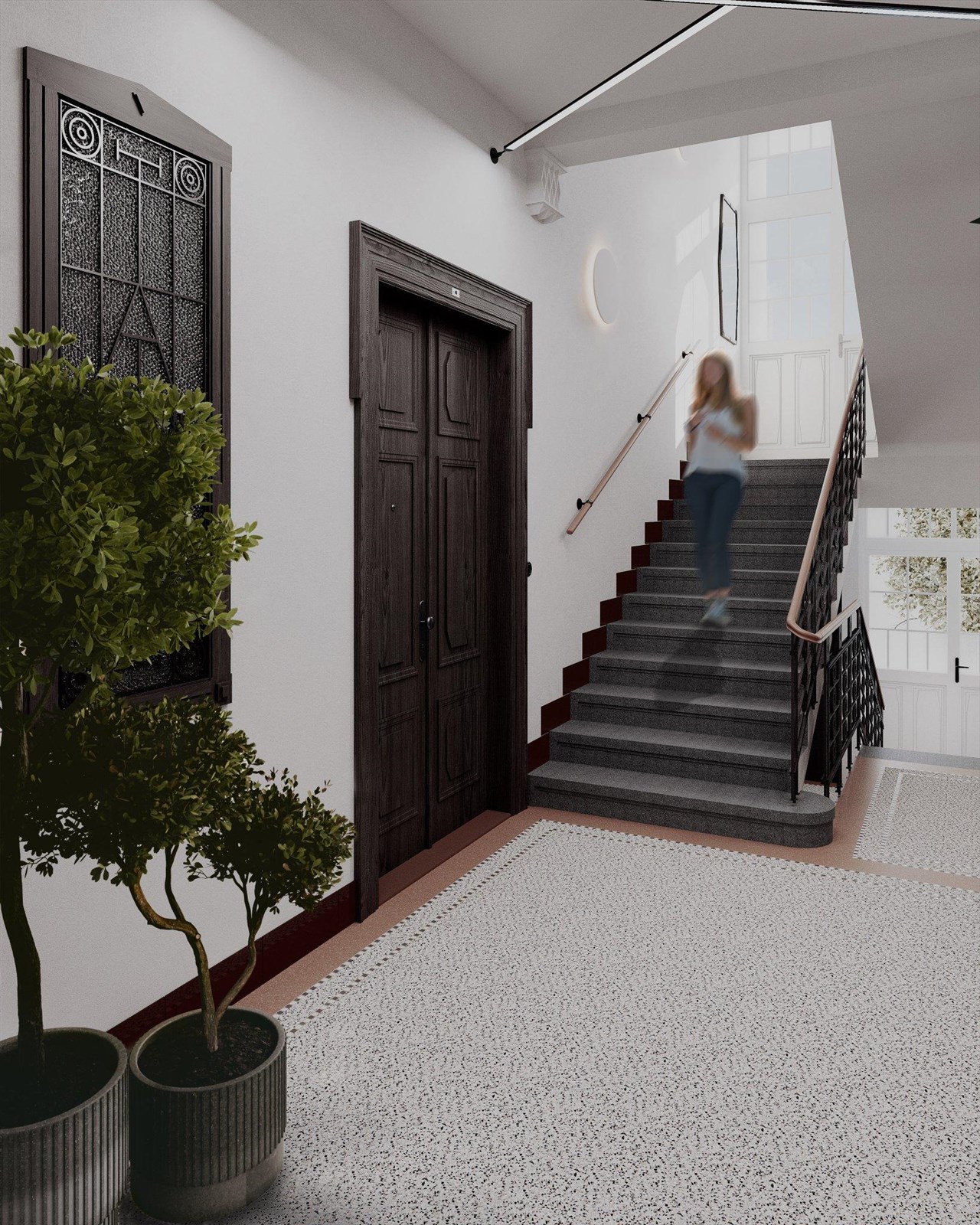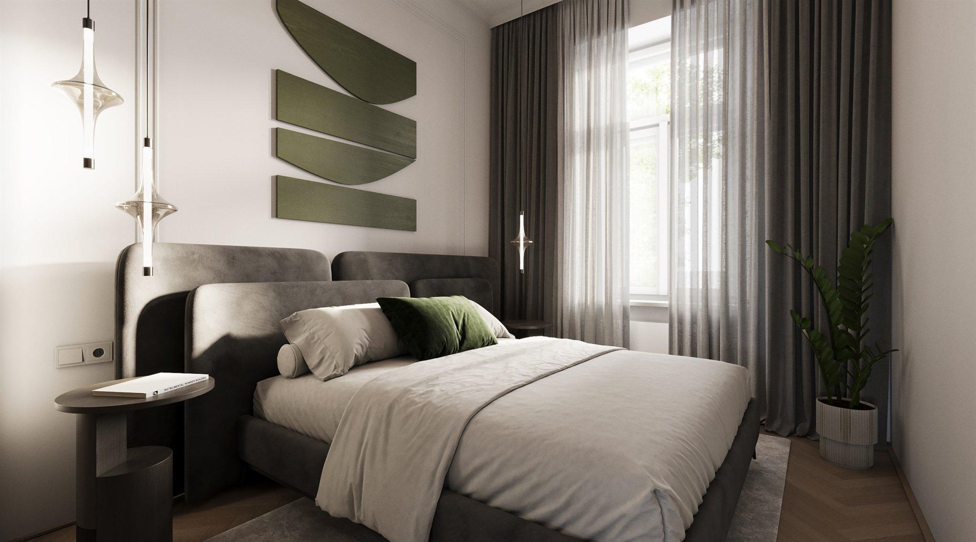 Prostorný a vyváženě řešený byt o dispozici 2+kk a podlahové ploše 46.1 m² je součástí nového rezidenčního projektu Heřmanova 24, který vzniká citlivou rekonstrukcí výjimečného kubistického domu z dvacátých let. Tento architektonický originál s charakterem Letné si zachovává svůj výrazný styl, zatímco interiéry získávají novou úroveň komfortu i řemeslného zpracování. Projekt spojuje silnou identitu domu s nároky současného bydlení a nabízí limitovaný počet bytů s důrazem na detail, materiály a nadčasovost. Dokončení je plánováno na první čtvrtletí 2027. Půdorys bytu v 5. podlaží zahrnuje obývací pokoj s přípravou na kuchyni, ložnici, vstupní chodbu, koupelnu a toaletu. K jednotce náleží také balkon a sklepní kóje. Vybavení zahrnuje dubové podlahy, dřevěná špaletová okna s dvojsklem, elegantní interiérové dveře, koupelnu s mramorovými obklady se sanitou značek Laufen a Grohe a decentně řešená otopná tělesa a elektroinstalaci, která neruší celkový výraz interiéru. Byt bude dokončen v provedení fit out – připravený k okamžitému nastěhování. Dům po kompletní rekonstrukci má reprezentativní společné prostory, moderní výtah, repasované kamenné schodiště se zdobným zábradlím a nové technické zázemí. Rezidentům je k dispozici sauna a ve vnitrobloku pak klidné místo k posezení mezi zelení. Dům stojí v tiché části ulice Heřmanova na Letné – v místě, kde se setkává městský život s klidem. Jen pár kroků odtud se otevírá Stromovka i Letenské sady, zatímco v okolí najdete oblíbené kavárny, bistra a designové obchody. V docházkové vzdálenosti je Národní galerie, obchodní centrum Stromovka i veškeré služby pro každodenní život. Na Strossmayerovo náměstí dojdete za pět minut, metro Vltavská je v dosahu osmi minut chůze a do centra Prahy se dostanete MHD během dvanácti. Letná nabízí rovnováhu – městskou energii i prostor pro zklidnění tempa. Heřmanova 24 stojí přesně uprostřed.