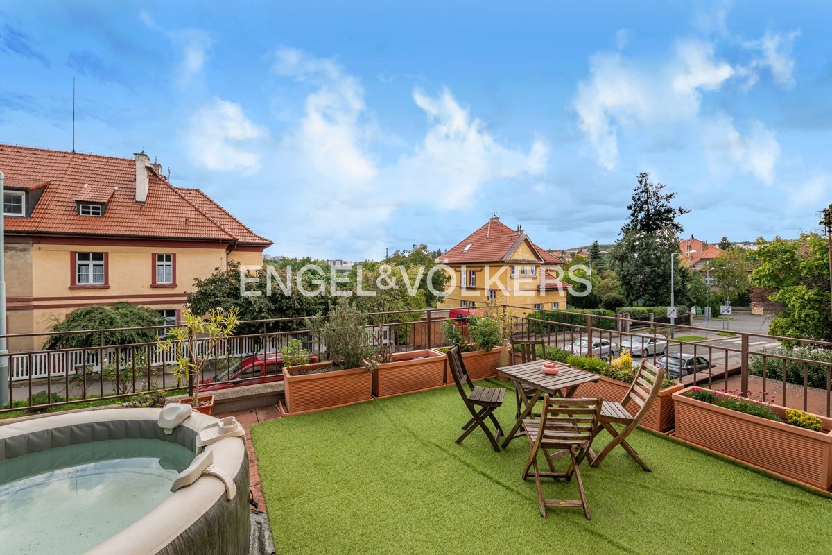 Prvorepublikový polořadový dům se zahradou a výhledy na Prahu