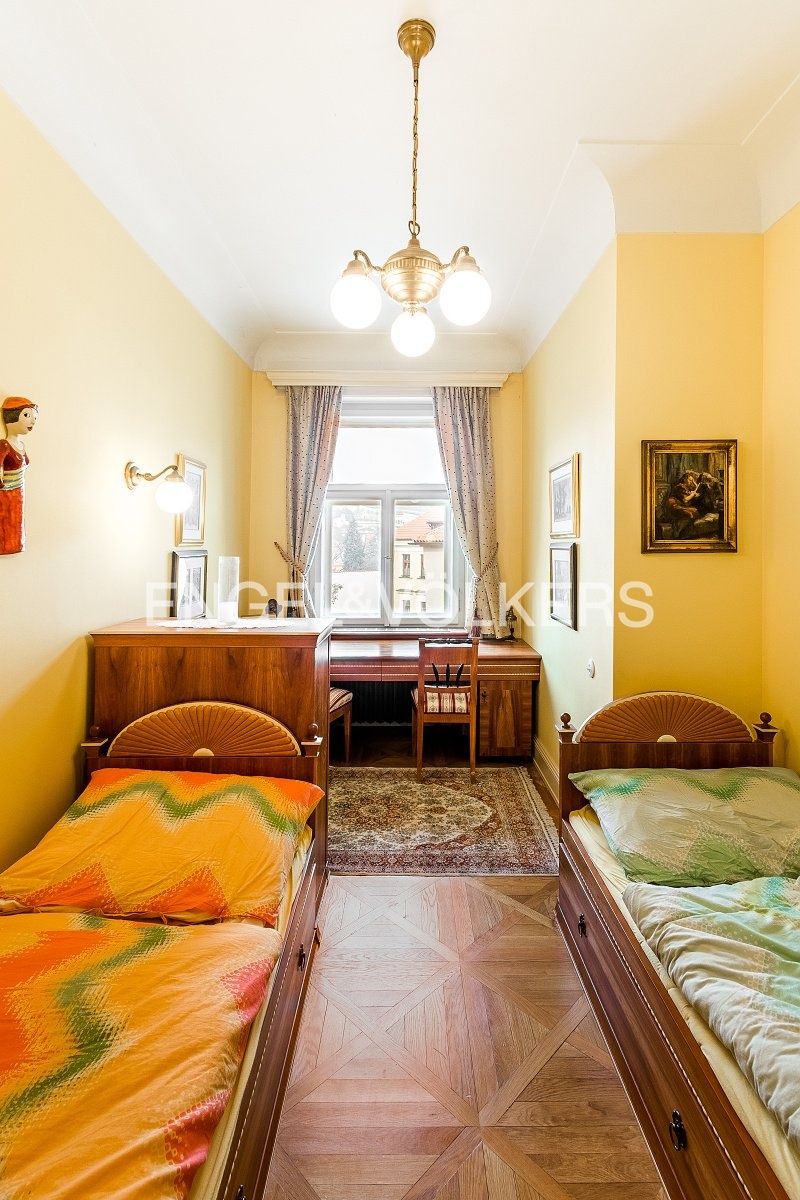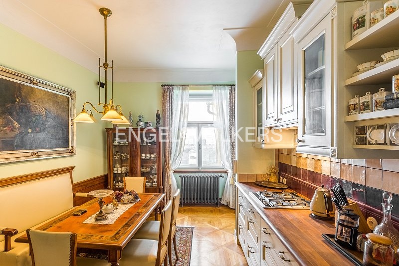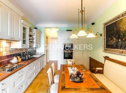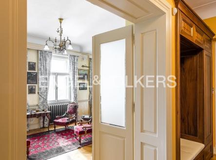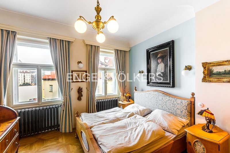 Prvotřídní bydlení s atmosférou staré Prahy s jedinečnými výhledy na Vltavu, Karlův most i Pražský hrad. Byt s oblíbenou dispozicí 3+1 po kompletní rekonstrukci v duchu nerudovské Prahy. Kompletně vybaven dobovým nábytkem s důrazem na kvalitu zpracování a nejmenší detail. Byt se nachází ve 3. nadzemním podlaží v pečlivě zrekonstruované historické budově bez výtahu. Ze vstupní haly vcházíte do salonku s historickými kamny, na toaletu pro hosty a do koupelny s komorou vybavenou spotřebiči (pračka, sušička). Další dominantu bytu představuje plně zařízená kuchyně (spotřebiče Miele, Siemens) s jídelním prostorem. Obě ložnice, z nichž jedna je průchozí, mají okna s výhledem na Pražský hrad. Byt disponuje několika okruhy audio systému Bose, TV i Wi-Fi připojením. V bytě je zabezpečovací zařízení; náleží k němu sklep. Minimální doba pro uzavření nájemní smlouvy činí 2 roky.