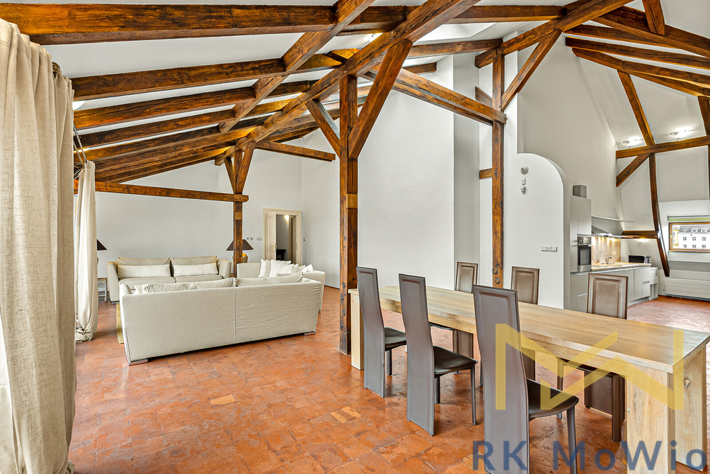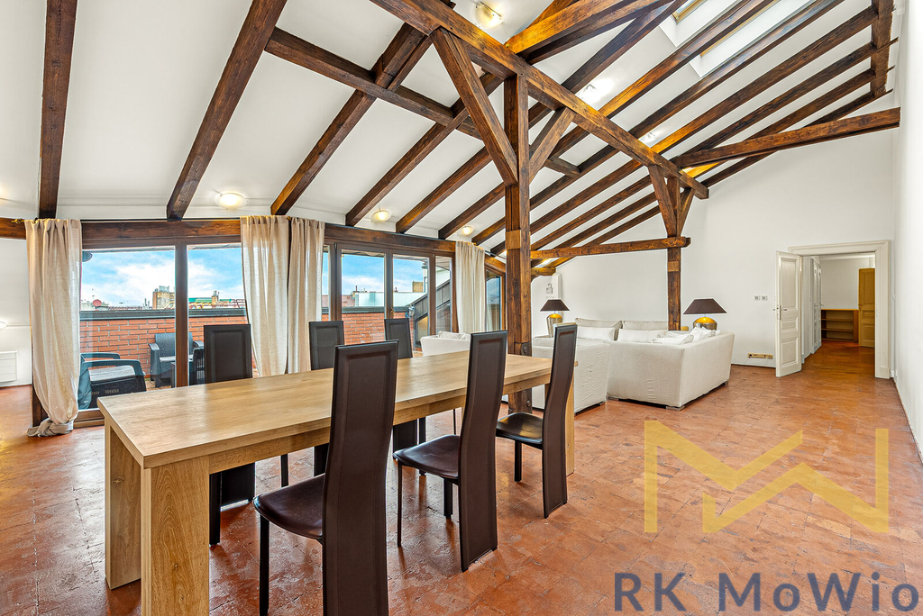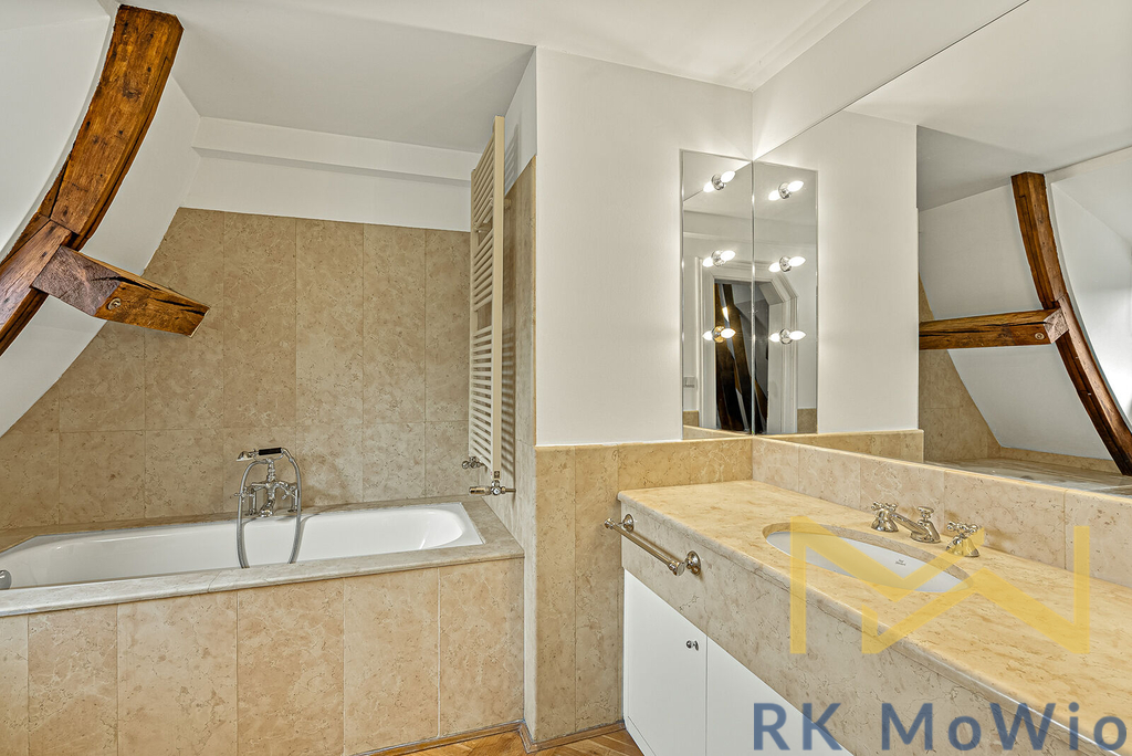 K pronájmu nabízíme podkrovní mezonetový byt bez nábytku, 4+1 s podlahovou plochou 282,23 m² a terasou (o výměře 23,29 m²) s výhledem na Pražský hrad, situovaný v 5. patře (6. nadzemní podlaží) honosné secesní budovy s výtahem v ulici Ibsenova, ve vyhledávané lokalitě Prahy 2 - Vinohrady. Půdorys bytové jednotky tvoří vstupní chodba, vzdušný obývací pokoj se vstupem na terasu, kuchyňský kout a jídelní prostor, hlavní ložnice s vlastní koupelnou (s vanou, umyvadlem, bidetem a toaletou), další 2 ložnice s privátními koupelnami (vždy se sprchou, umyvadlem, bidetem a toaletou), prádelna, komora a toaleta pro hosty. Všechny ložnice mají přístup na galerii se střešními okny. Vybavení bytu: kuchyňská linka (včetně lednice s mrazákem, sklokeramické varné desky, digestoře, elektrické trouby a myčky), vestavěné skříně, pračka a sušička, dřevěné trámy, velkoformátová okna, dřevěné podlahy a dlažba. Možnost pronájmu parkovacího stání v budově. Foto je ilustrativní. Vinohrady jsou lokalitou oblíbenou především pro dlouhodobý pronájem, v bezprostředním okolí naleznete veškerou občanskou vybavenost - restaurace (Restaurace Aromi, Pizzeria Concordia, WingHaus), kavárny (Choco Loves Coffee, Monolok café, Goodie store & café), bistra a bary, supermarkety (Albert) a lokální obchody, lékárny a polikliniku, divadla (Divadlo na Vinohradech), úřady, poštu, bankomaty a další. Blízkému náměstí Míru dominuje impozantní novogotická bazilika sv. Ludmily. Pro relaxaci v zeleni jsou oblíbené rozlehlé Riegrovy sady. Výborná dopravní dostupnost - stejnojmenná zastávka tramvaje a metra A - Náměstí Míru, přestupní stanice metra A a C - Muzeum. Na Václavské náměstí dojedete MHD dostanete již za 5 minut. Na dálniční okruh (nájezd 5. května) při jízdě autem najedete během cca 9 minut. Měsíční nájemné činí 100.000,- Kč/měsíc (€4.000/měsíc), poplatky 12.000,- Kč/měsíc + elektřina + plyn a internet, parkovací stání za 5.000,- Kč/měsíc (€200/měsíc). Požadovaná jistota (kauce) ve výši dvou měsíčních nájmů. Majitel požaduje platby nájmu v EURECH. Minimální délka pronájmu je 1 rok, ubytování formou Airbnb nelze realizovat. Třída energetické náročnosti budovy činí dle vyhlášky 148/2000 Sb. klasifikovaná jako G.