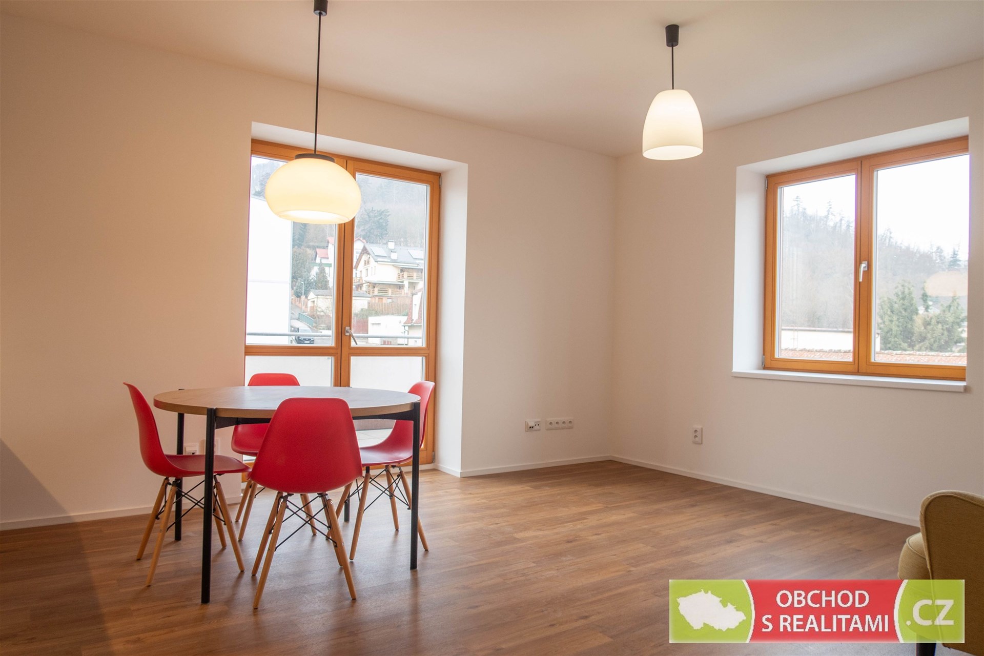 Bytová jednotka o výměře 62,2 m2 s balkónem o rozloze 11,2 m2 se západní orientací, terasou o rozloze 5,8 m2 s východní orientací se nachází v druhém patře prvorepublikové vily po kompletní rekonstrukci na adrese Na Výšince 748/1, Praha 16 Radotín. Jedná se o nejvyšší patro v domě, z oken bytu se tak nabízí volný výhled do okolí a maximální soukromí. Zdrojem tepla v domě je tepelné čerpadlo, teplá voda pomocí bojleru a zdravé klima v bytu zajišťuje rekuperační jednotka. Dispoziční plánek s výměrou jednotlivých místností přikládáme. Byt je vybaven novou, plně vybavenou kuchyňskou linkou, ostatní vybavení dle přiložené fotodokumentace. Podlahovou krytinou je vinyl. K bytu náleží zděný sklep o rozloze 2,4 m2 a parkovací stání pro 1 automobil na pozemku domu, které bude v nejbližších týdnech dokončeno zámkovou dlažbou. Výborná dopravní dostupnost je jedním z hlavních benefitů. Železniční stanice Radotín je v pěší vzdálenosti, odkud vás linka S7 dopraví na Smíchov za pouhých 10 minut. V okolí je kompletní občanská vybavenost i množství zeleně. Nájemné 27.900 Kč/měsíc + služby v domě 3.800 Kč/měsíc + převod elektroměru na nájemce. Jistota (kauce) 30.000 Kč, odměna realitní kanceláře 27.900 Kč.