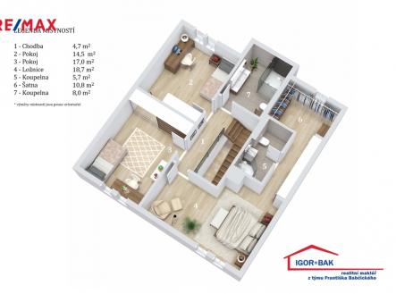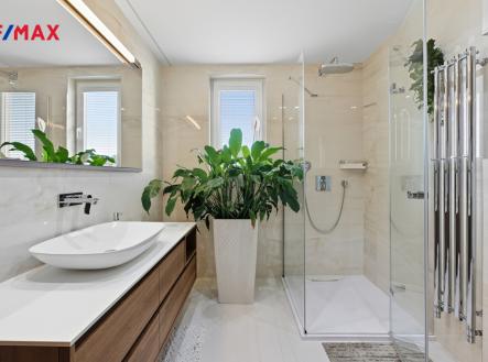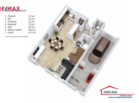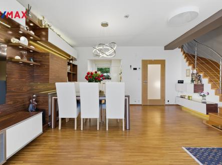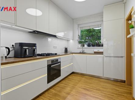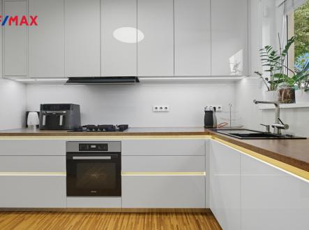 Nabízím exkluzivní rohový řadový dům 4+kk s užitnou plochou přibližně 143 m² a garáží o velikosti 21,7 m², který prošel kompletní rekonstrukcí v roce 2024. Dům se nachází v klidné části Prahy 9 – Satalice a prodává se plně zařízený, včetně nábytku na míru, vestavěných spotřebičů Miele a designových doplňků. Každý detail interiéru byl promyšlen s důrazem na funkčnost, kvalitu a styl. Dům je navržen designérem a nabízí komfortní a elegantní prostředí bez nutnosti dalších investic. V přízemí se nachází předsíň 5,2 m² s vestavěnými úložnými prostory, samostatné WC 1,4 m², prádelna 1,6 m² a spíž 0,9 m². Kuchyně 7,5 m² s linkou na míru je vybavena spotřebiči Miele a doplněna o LED podsvícení. Na kuchyň navazuje prostorný obývací pokoj 29,6 m² s přímým vstupem na terasu a zahradu. Dominantou obývací části je exkluzivní mozaiková dřevěná podlaha. Součástí přízemí je také garáž 21,7 m² s přímým vstupem do domu. V patře se nachází chodba 4,7 m², pokoj 14,5 m², druhý pokoj 17,0 m², ložnice 18,7 m² s prostornou šatnou 10,8 m² a dvě koupelny se sprchovým koutem a WC o velikosti 5,7 m² a 8,0 m². Celkem jsou v domě tři toalety. Zahrada o výměře 247 m² byla navržena architektem a tvoří soukromou oázu klidu. Je zde bazén o rozměru 5 × 3 metry se slanou vodou a tepelným čerpadlem, automatické zavlažování, zahradní domek s elektřinou a krytá pergola s posezením a grilem. Celý venkovní prostor je osvětlený a vybavený elektrickými zásuvkami. Dům je technicky i bezpečnostně nadstandardně vybaven. Má kamerový systém, alarm, klimatizaci ve všech místnostech, elektrické venkovní rolety, bezomítkové bezpečnostní dveře NEXT, podomítkové baterie, vysokorychlostní internet a všechny inženýrské sítě – plyn, elektřina, voda a kanalizace. V přízemí jsou dřevěné podlahy, v obývacím pokoji exkluzivní mozaiková dřevěná podlaha, v patře designové laminátové. Nábytek na míru s LED podsvícením, vestavěné skříně i osvětlené designové prvky dávají domu osobitý charakter. Kuchyň, obývací pokoj i ložnice byly navrženy designérem s důrazem na detail a pohodlí. Parkování je zajištěno v garáži a dalším stáním před domem. Dům se nachází v klidné a zelené části Prahy 9 – Satalice, v bezprostřední blízkosti přírodní památky Bažantnice a Satalické obory, které jsou součástí naučné stezky Vinořský park – Satalická bažantnice. Okolí nabízí ideální podmínky pro procházky, sport i relaxaci v přírodě. Výborná dopravní dostupnost: přibližně 5 minut na Černý Most, 10 minut do Letňan a 20 minut do centra Prahy. V blízkosti se nachází škola, školka, vlaková stanice, MHD i obchody. Tento exkluzivní, kompletně vybavený dům, nevyžaduje žádné investice a je připraven k okamžitému nastěhování. Spojuje nadčasový design, moderní technologie a klidné bydlení v přírodě s vynikající dostupností do centra Prahy.