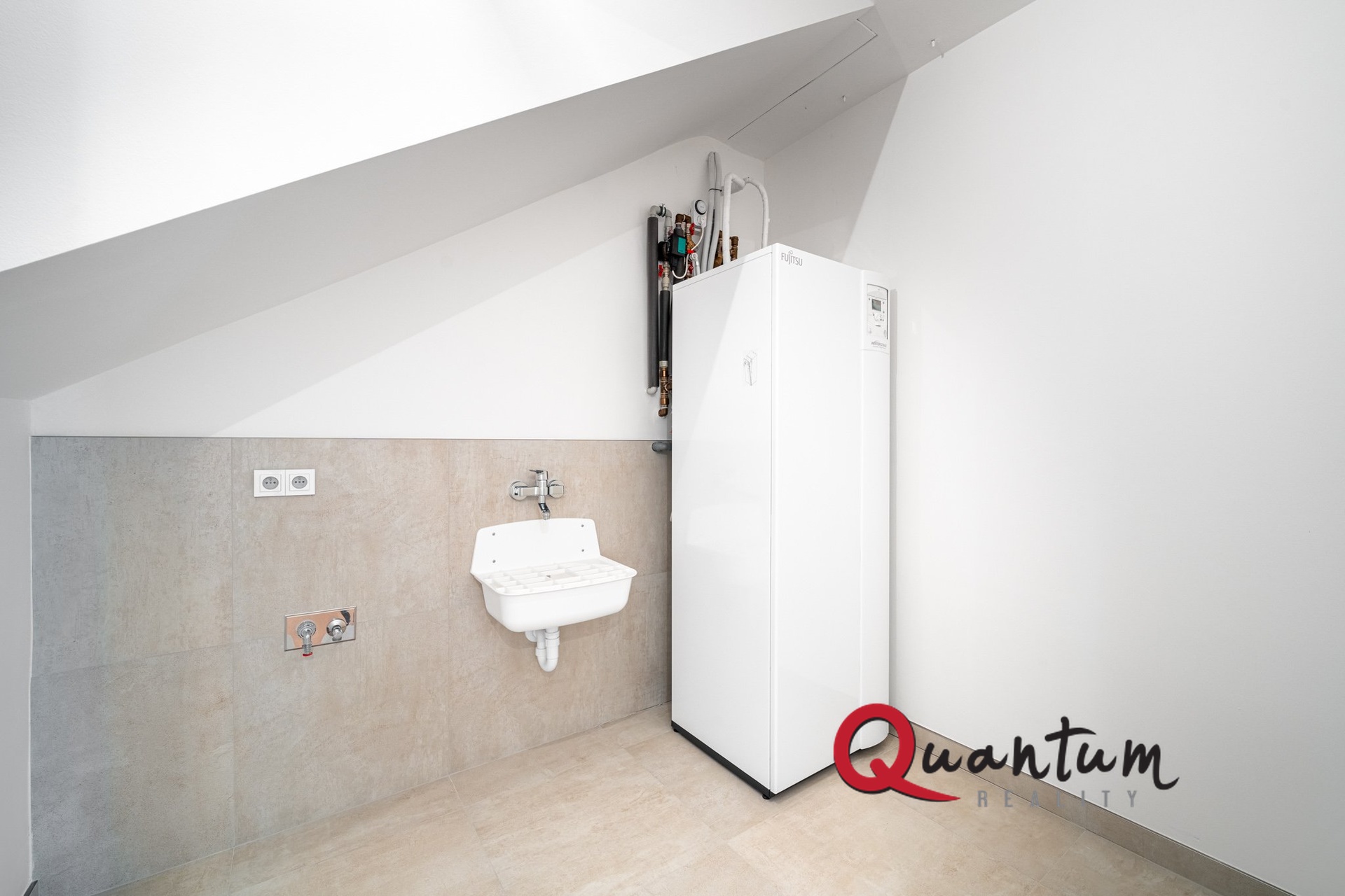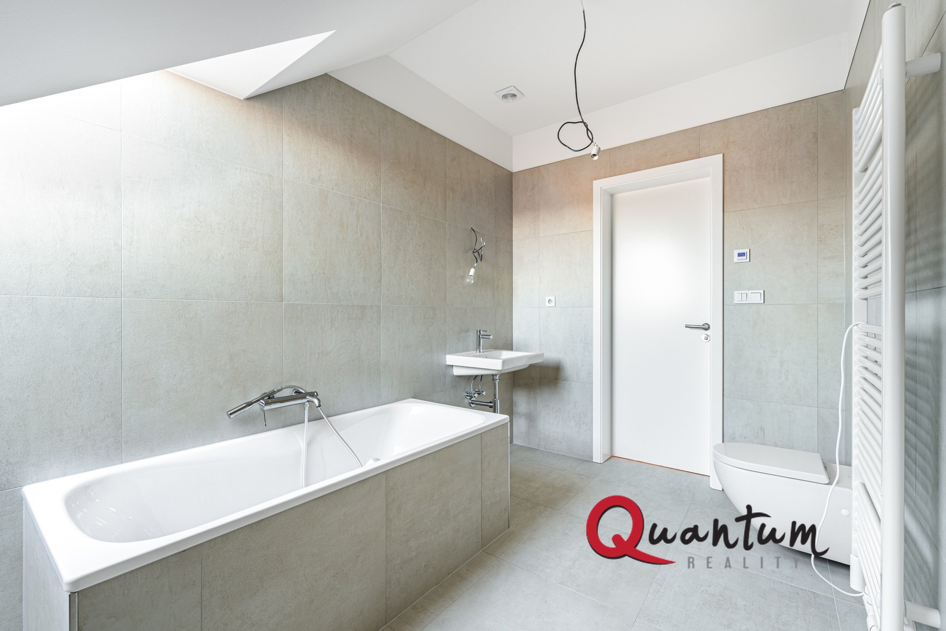 Exkluzivní nabídka samostatně stojícího rodinného domu 7+1 v Praze 10 - Královice - ulice Ke Tvrzi. Moderní novostavba rodinné vily je postavena z kvalitních stavebních materiálů s důrazem na tepelně izolační vlastnosti a úsporu energií. Racionální a účelná vnitřní dispozice poskytuje ideální prostor pro plnohodnotné rodinné bydlení. V přízemí domu se nachází dominantní obývací pokoj s kuchyňským koutem a jídelnou (65 m²). Dále přízemí zahrnuje vstupní halu, pracovnu či variantně pokoj pro hosty, koupelnu, toaletu, šatnu a dvojgaráž. Patro domu je klidovou zónou s hlavní ložnicí s vlastní šatnou a koupelnou s toaletou, dále dva dětské pokoje, další praktická šatna a koupelna s toaletou. Nadstandardním a neočekávaným prostorem celého domu je suterén, který překvapí dvěma plnohodnotnými, plně prosvětlenými pokoji se vstupem na terasu a zahradu. Pokoje mohou sloužit jako pokoje pro hosty, fitness, pracovna, hobby místnost či jako plnohodnotný byt s privátním vstupem. Samozřejmostí je vlastní sociální zázemí, dále technická místnost s prostorem pro pračku i sušičku a také s praktickým detailem v podobě shozu na prádlo. Celková užitná plocha třípodlažního domu činí ohromujících 390 m². Zcela nový dům je nezařízený, připravený k nastěhování, standardem jsou však kvalitní dubové podlahy, velkoryse vybavené koupelny, velkoformátová hliníková okna s izolačními trojskly včetně předokenních žaluzií, celoplošné podlahové teplovodní vytápění úsporným tepelným čerpadlem, přípravou na krbová kamna apod. Kompletní inženýrské sítě jsou napojeny. Celková rozloha koncového, rovinného pozemku se založenou základní zahradou a krásným výhledem do údolí říčky Rokytky činí 1421 m². Rodinný dům je situován na okraj klidové rezidenční zástavby uceleného, již zabydleného projektu Nové Královice, jehož součástí je i restaurace, v těsné blízkosti je hřiště, tenisové kurty a další. Kompletní občanská vybavenost je v sousední Uhříněvsi či Kolovratech. Městská část Královice je ideálním místem pro harmonický život blízko přírody, které nabízí jedinečné propojení klidného vesnického prostředí s moderním městským komfortem. Zároveň jsou dobře dopravně dostupné a v blízké budoucnosti se dostupnost dále zlepší napojením na budovaný Pražský okruh. Velmi ojedinělá nabídka exkluzivního, nového, prostorného rodinného domu připraveného k okamžitému nastěhování bez kompromisů. Lze financovat hypotečním úvěrem.