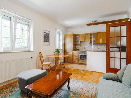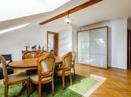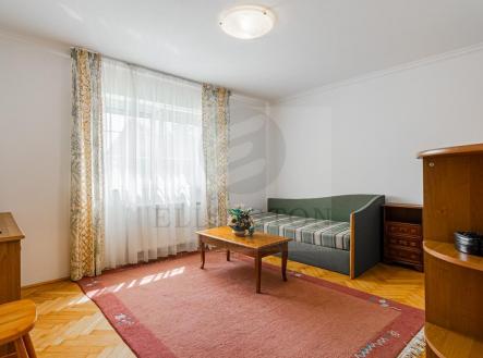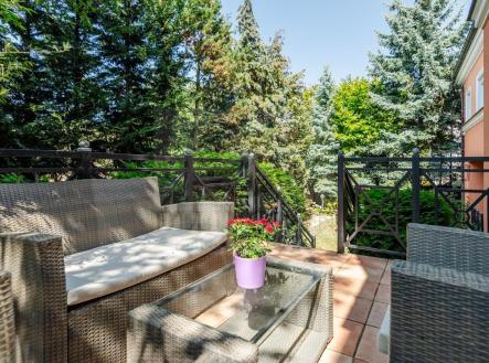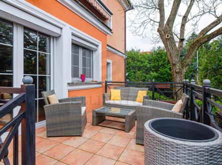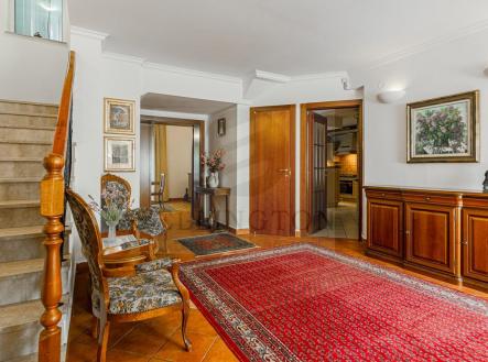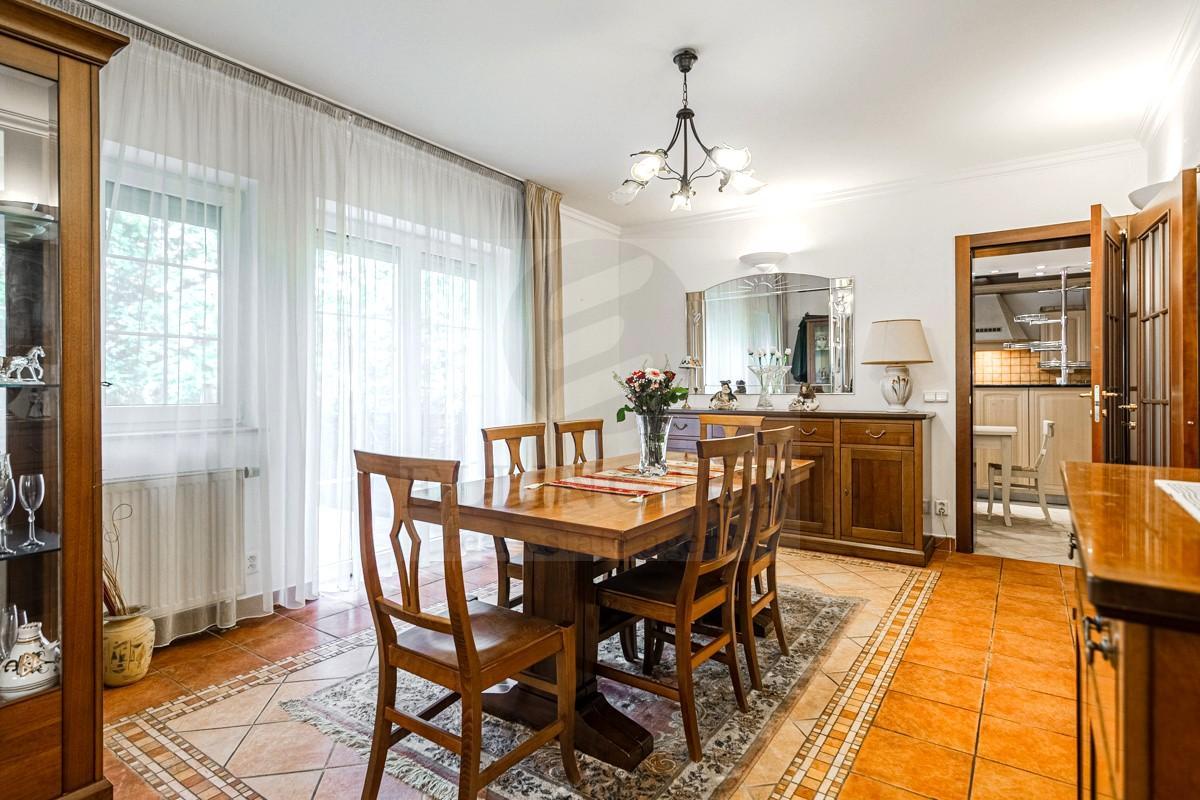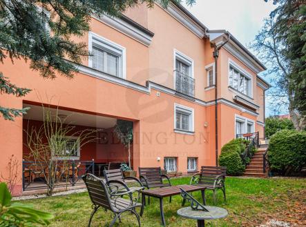 Dovolte mi, abych vás jménem realitní kanceláře Ellington, pozvala na prohlídku mimořádně prostorného a elegantního domu. Hledáte krásné prostory pro reprezentační sídlo firmy? Nebo hledáte velký a útulný dům pro Vaší velkou rodinu? Jste s námi na správné adrese. Nacházíme se ve velmi krásné a žádané lokalitě v Praze 4 Kunraticích v ul. Kalmánova, kde se nachází tento atypicky řešený rodinný dům o celkové rozloze 715m2. Při vstupu do domu vcházíme do prostorné chodby, z níž pokračujeme dále do dvougaráže, kuchyně, jídelny a krásného obývacího pokoje. Obývací pokoj není jen dominantou celého domu, jeho rozloha zaujímá celé přízemní patro. Je tak veliký, že si tady můžete i zatančit. Pokud byste tento dům chtěli využít jako sídlo firmy, představte si tady firemní setkání s rautem, hudbou a třeba i tancem. Když budeme pokračovat dále v prohlídce, dostáváme se na menší snídaňovou terasu a z ní můžeme sejít po schodech do krásné vzrostlé zahrady a na druhou terasu. Při firemním i rodinném využití, skýtají terasy a zahrada možnost pracovat i žít venku, v uklidňujícím prostředí. Pojďte se se mnou podívat do prvního patra. Zde najdete 3 x dětské pokoje, 1 x ložnici se šatnou a koupelnou s WC. Na chodbě nacházíme další koupelnu s WC a s prostornou šatnou. Opět připomínáme možnosti využití prostor třeba jako ordinace, jazykové učebny, prostory pro terapie,... , stejně tak, jako komfortní bydlení pro více členů rodiny. Ve druhém patře je možné využívat 3 velké prostorné místnosti se šatnou, koupelnou a s WC. Opět, jako v přízemí, se zde nachází velký obývací pokoj, zde je vybavený menší kuchyňskou linkou. Dovolujeme si vás upozornit, že toto podlaží má samostatný vchod z bočního schodiště. To je velká výhoda soukromí. V případě, že byste tento dům využívali k práci, stejně jako k bydlení, můžete tímto uspořádáním, obě části života oddělit. Ze stejného schodiště se dostanete do bytové jednotky 1+1 o celkové rozloze 45m2 v 1patře. Vstupte se mnou do suterénu. V obývacích pokojích jsme uvažovali o tanci, zde můžete zpevnit tělo cvičením a ulevit stresu z práce. Nachází se zde menší fitness s pingpongovým stolem, velká šatna, sprchový kout a WC. Technické zařízení domu je také tady, a to kotelna, prádelna a sklad. Jak vidíte, i tady v suterénu, je vše čisté a světlé. Když spolu vyjdeme ven a rozhlédneme se, vidíte, že je na pozemku dostatek míst pro zaparkování většího množství aut. Přijďte na prohlídku a uvažte, jak krásně by se Vám zde žilo a podnikalo! Kunratice je krásná a klidná rezidenční čtvrť se smíšenou zástavbou klasických rodinných domů i moderních vil s veškerou občanskou vybaveností OC Kunratice včetně prestižních soukromých škol a školek, zdravotního střediska s lékárnou a pošty. Kunratický les nabízí velké možnosti pro sportovní nebo jen pro klidné rodinné vycházky. Díky napojení na Městský okruh a D1 je zde skvělá dopravní dostupnost Thomayerova nemocnice a IKEM cca 5 min autem. Stanice metra D Nemocnice Krč je již ve výstavbě. Nutno vidět. Vzhledem k lokalitě tuto nabídku doporučujeme.